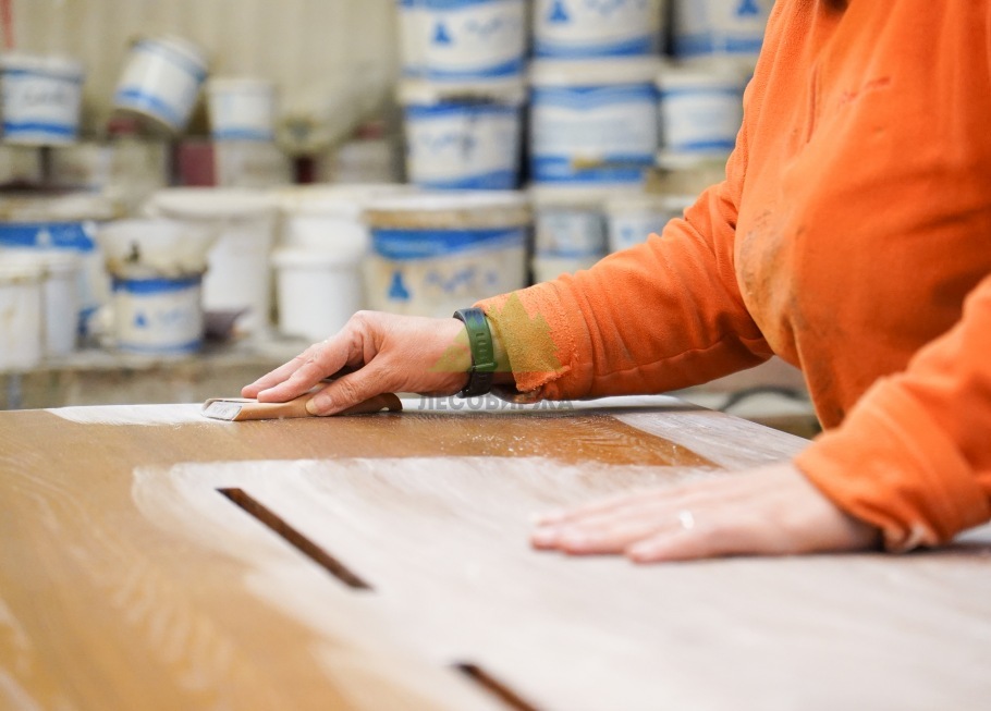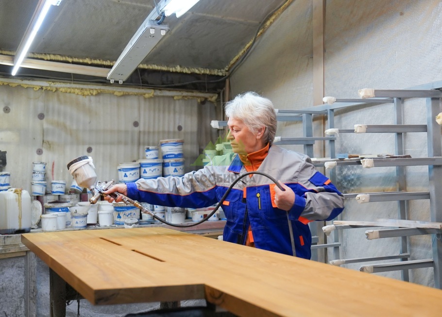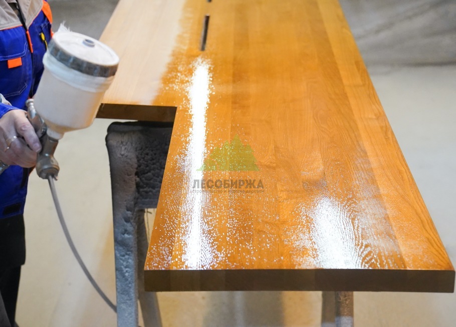Процесс работы над этим проектом начался с тщательной оценки исходного изделия. Несмотря на то, что массив ясеня сам по себе является высококачественным материалом, его поверхность требовала ювелирной подготовки. Наши мастера в покрасочном цехе Лесобиржа-Спб приступили к многоэтапной шлифовке. Этот этап критически важен, поскольку любое, даже самое незначительное несовершенство поверхности будет безжалостно подчеркнуто финишным лаком. Мы использовали абразивные материалы различной зернистости, постепенно переходя от более грубой к максимально тонкой, добиваясь идеально гладкой и ровной основы. Каждый этап шлифовки сопровождался тщательной очисткой от пыли, чтобы избежать мельчайших включений под покрытием.