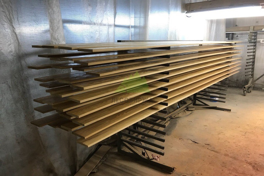 Работы выполнялись на профессиональном оборудовании в малярном цехе Лесобиржи-Спб, что позволило достичь идеального качества поверхности и равномерности нанесения. Весь процесс был строго регламентирован и включал в себя следующие этапы: