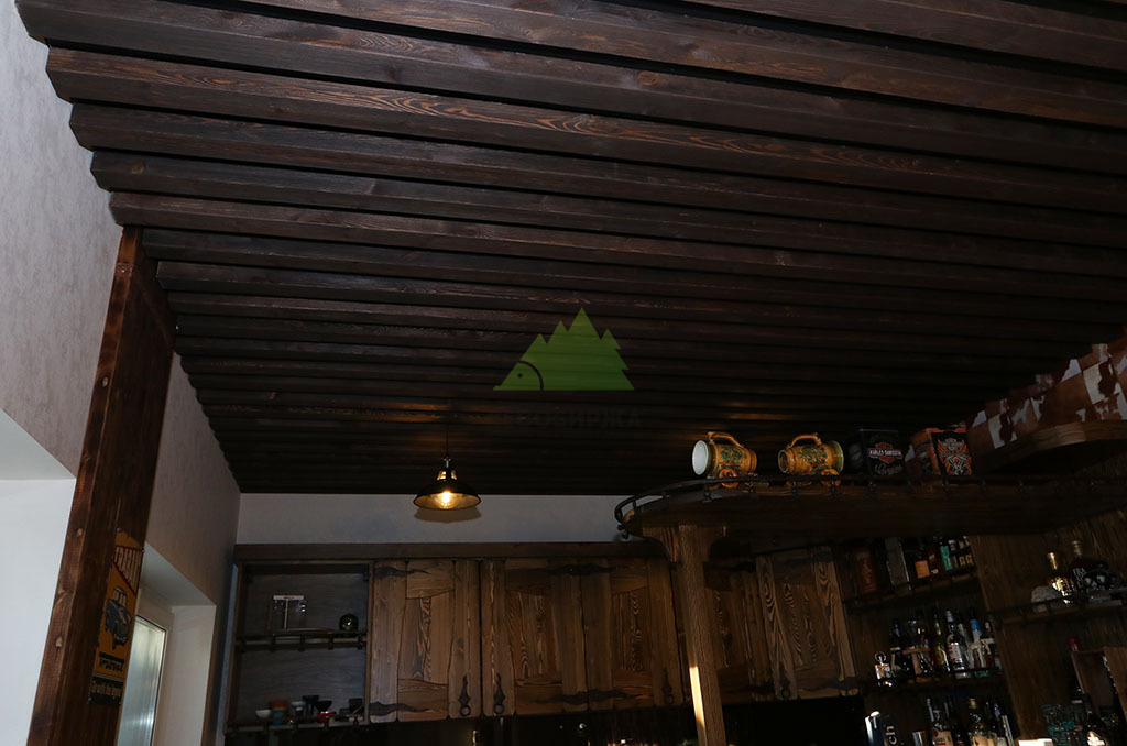 В мире современного дизайна интерьера, где постоянно ищутся уникальные и запоминающиеся решения, стиль "шале" занимает особое место. Его аутентичность, теплота и связь с природой делают его идеальным выбором для создания уютного и респектабельного пространства. Именно такой запрос поступил в нашу компанию Лесобиржа-Спб от клиента, мечтающего преобразить потолок своего домашнего бара в частном доме, расположенном в живописном пригороде Санкт-Петербурга.