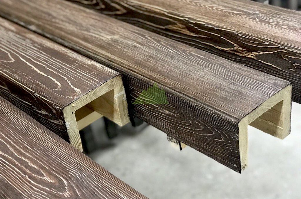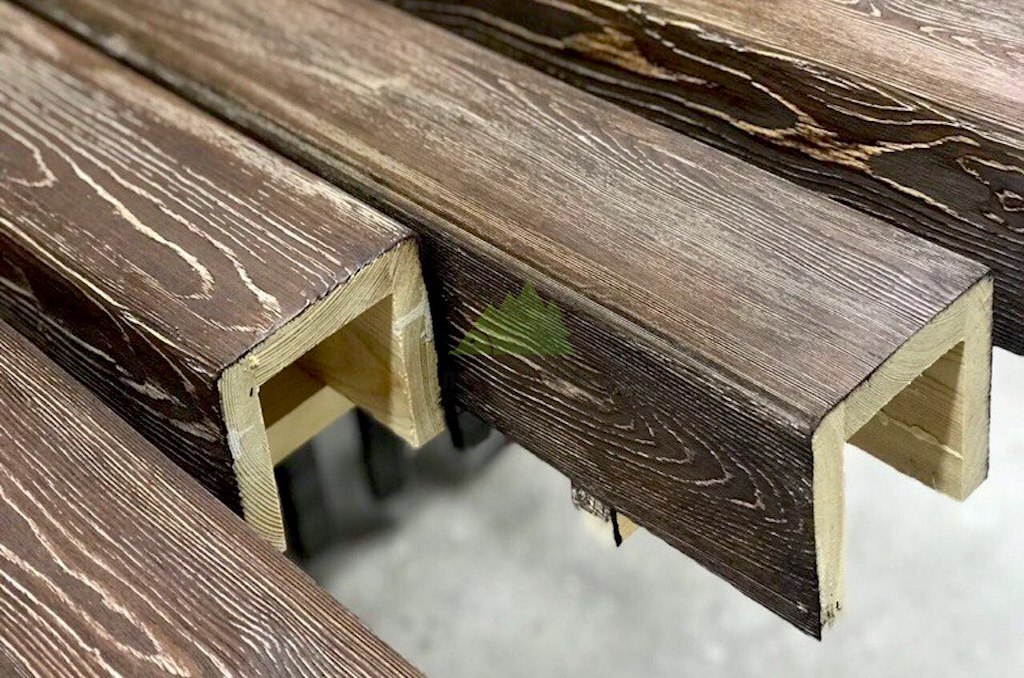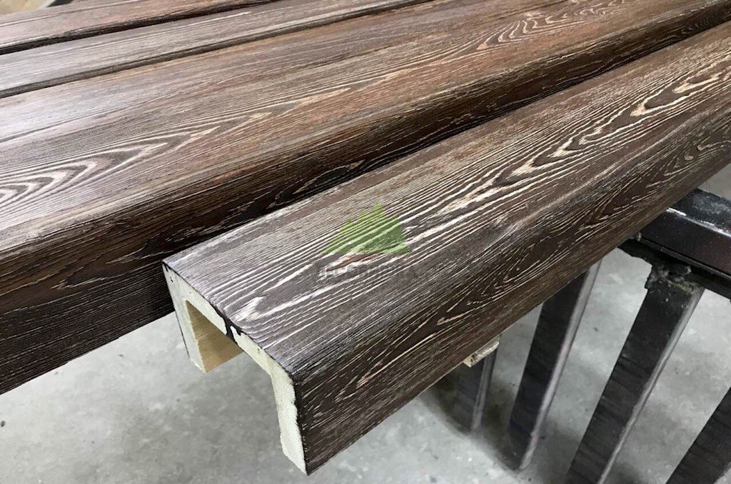 - Предварительная подготовка и брашировка: Первым и одним из наиболее ответственных этапов является брашировка древесины. Цель брашировки – удалить мягкие волокна древесины, тем самым выявив и подчеркнув естественную структуру годичных колец. Для достижения идеального результата мы использовали три вида щеток, каждая из которых выполняет свою уникальную функцию. Сначала в дело идет латунная щетка, которая глубоко проникает в структуру древесины, удаляя основную массу мягких волокон и создавая ярко выраженный рельеф. Затем абразивная щетка сглаживает слишком резкие переходы и готовит поверхность к дальнейшей обработке, делая текстуру более равномерной. Завершающий этап брашировки — обработка щеткой из сизаля, которая деликатно полирует поверхность, убирая мельчайшие заусенцы и придавая дереву приятную на ощупь гладкость, сохраняя при этом выразительность рельефа. Важно отметить, что фальшбалки, в отличие от обычной доски, не могут быть прогнаны через автоматический станок. Весь процесс брашировки, от начала до конца, выполняется нашими опытными мастерами вручную, что гарантирует индивидуальный подход к каждой балке и безупречное качество.