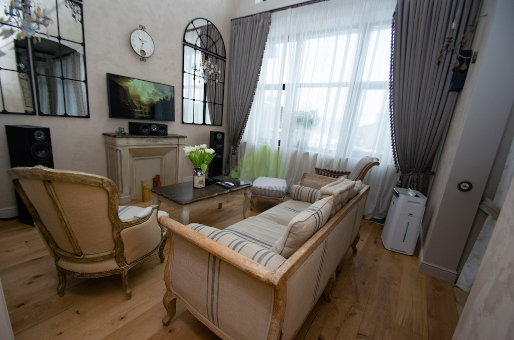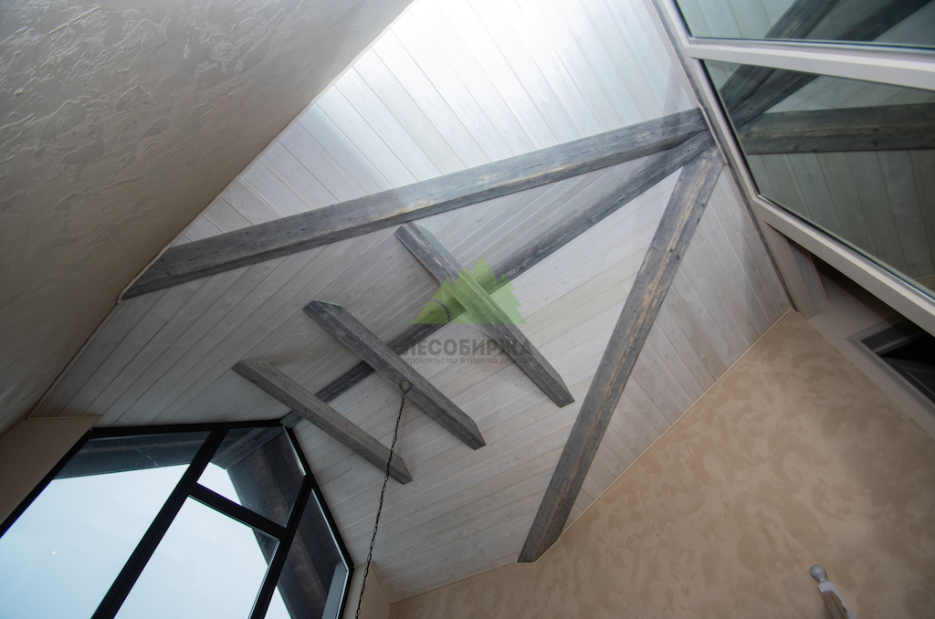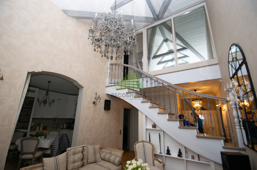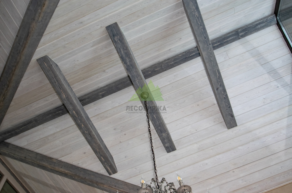 Для покраски лиственничного потолка мы применили белесый лак Teknos TEKNOCOAT AQUA 2550-02 (ТМ6943/06). Этот выбор обусловлен несколькими факторами: лак не только защищает древесину от внешних воздействий, но и сохраняет ее естественную текстуру, слегка осветляя поверхность и придавая ей тот самый "выцветший", нежный оттенок, характерный для стиля "Прованс". Специалисты нашего малярного цеха, обладающие глубокими знаниями и многолетним опытом работы с различными видами древесины и лакокрасочных материалов, добились идеального результата. Потолок приобрел легкий, воздушный вид, зрительно расширяя пространство гостиной и наполняя ее светом.