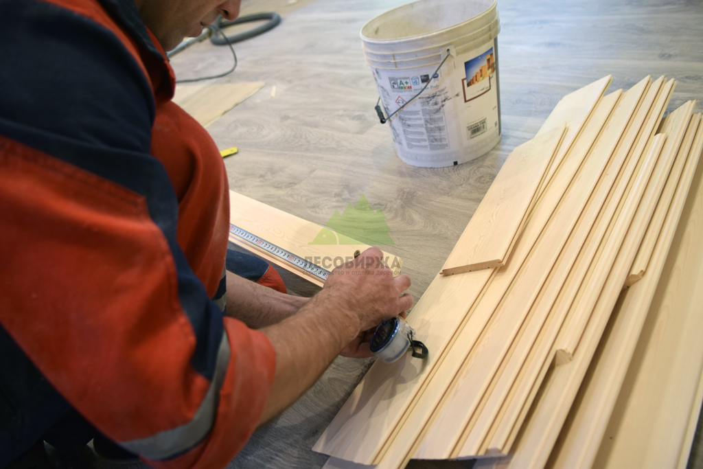 Перед финишной отделкой вагонка прошла обязательный этап браширования в наших производственных цехах Лесобиржи-Спб. Брашировка — это технологический процесс, при котором специальными щётками из поверхности древесины удаляются мягкие волокна, в результате чего твёрдые волокна остаются и формируют рельефный рисунок. Этот этап критически важен для того, чтобы в дальнейшем белый воск мог проникнуть в поры, но при этом на поверхности оставался чёткий, выразительный рельеф, подчёркивающий природную красоту сосны. Наши мастера-декораторы — это не просто маляры, а настоящие художники, способные превратить обычную доску в произведение искусства.