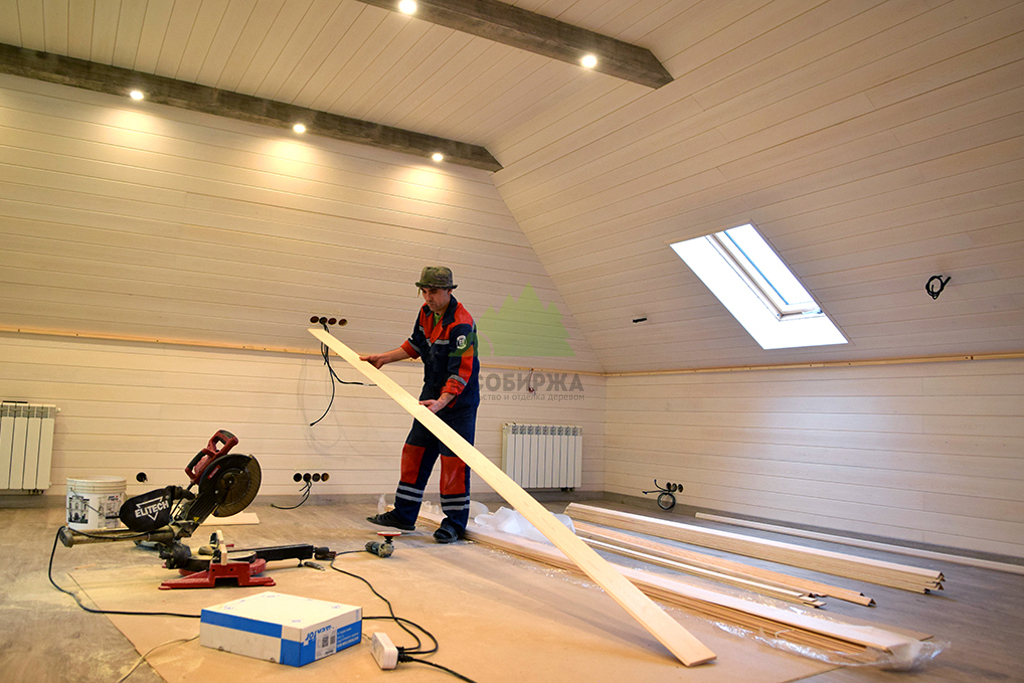 В Лесобирже-Спб мы гордимся тем, что воплощаем в жизнь самые смелые и продуманные проекты наших клиентов, превращая их идеи в реальность. Одним из таких ярких примеров стала работа над интерьером частного дома в живописном коттеджном посёлке Павловские холмы, расположенном в Ленинградской области. Заказчики обратились к нам с детальным видением своего будущего интерьера: им требовалась внутренняя отделка стен и потолков вагонкой, а также монтаж декоративных фальшбалок. Ключевым требованием было использование исключительно натуральных, паропроницаемых материалов и составов, чтобы дерево могло "дышать", создавая в доме здоровую и комфортную атмосферу.