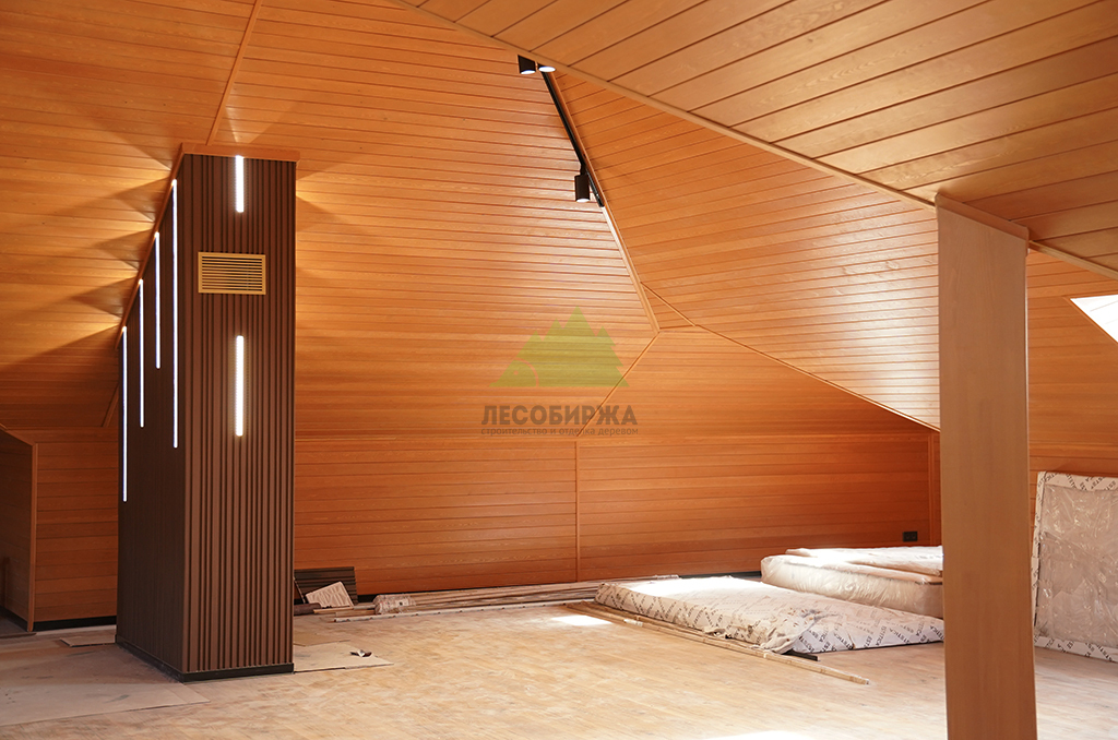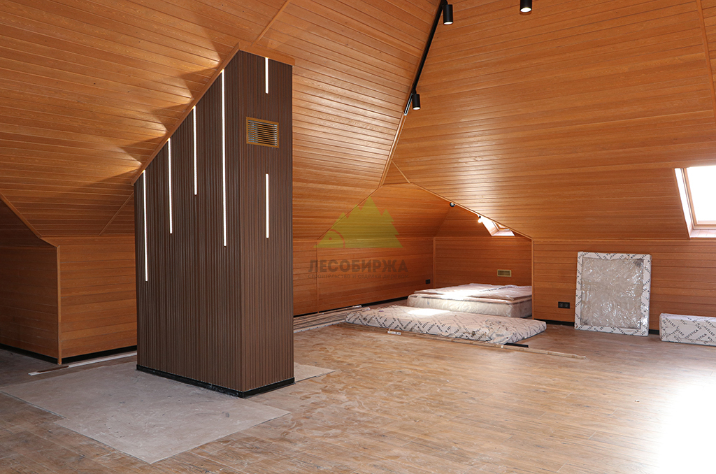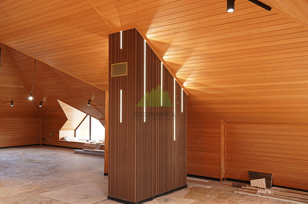 Наши мастера в Лесобирже-Спб приступили к монтажу вагонки с исключительной аккуратностью и вниманием к деталям. Особенностью данного проекта стала отделка интерьера банного комплекса. Клиент также сделал очень мудрый выбор, остановившись на узких досках для отделки стен и потолков. Это решение имеет ряд неоспоримых преимуществ, которые мы всегда рекомендуем нашим клиентам. Во-первых, узкая доска менее подвержена естественным деформациям, таким как рассыхание и коробление, что минимизирует вероятность образования щелей и появления "мостиков холода" с течением времени. Это обеспечивает долговечность и стабильность конструкции, позволяя избежать дорогостоящего ремонта и перетяжки через несколько лет. Во-вторых, эстетически узкие доски создают более динамичный и изысканный рисунок на стенах и потолке, зрительно расширяя пространство и добавляя интерьеру легкости. В-третьих, монтаж узких планок требует особой точности и мастерства, которыми в полной мере обладают наши специалисты. Каждая доска монтируется с учетом компенсационных зазоров, обеспечивая идеальное прилегание и безупречную геометрию всей конструкции.