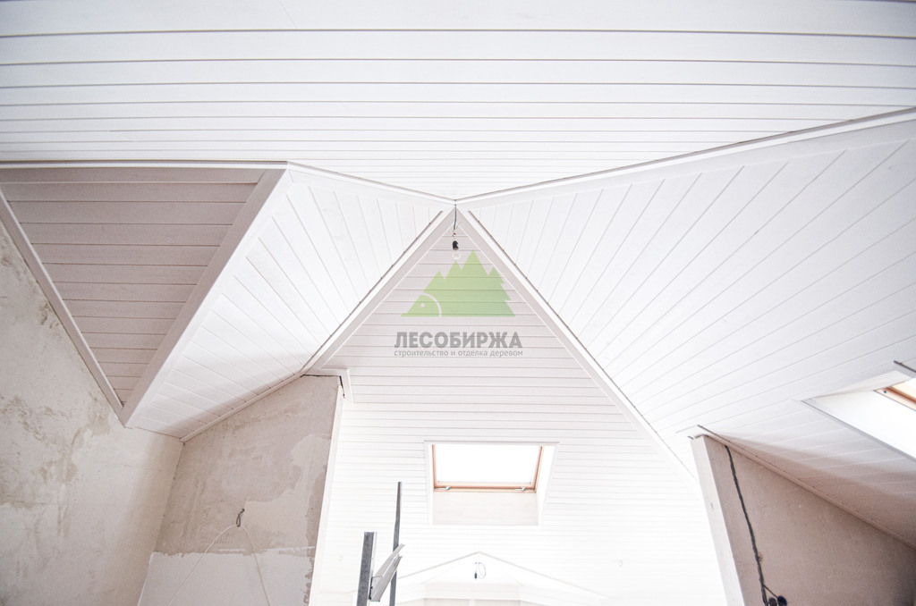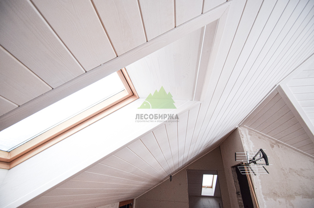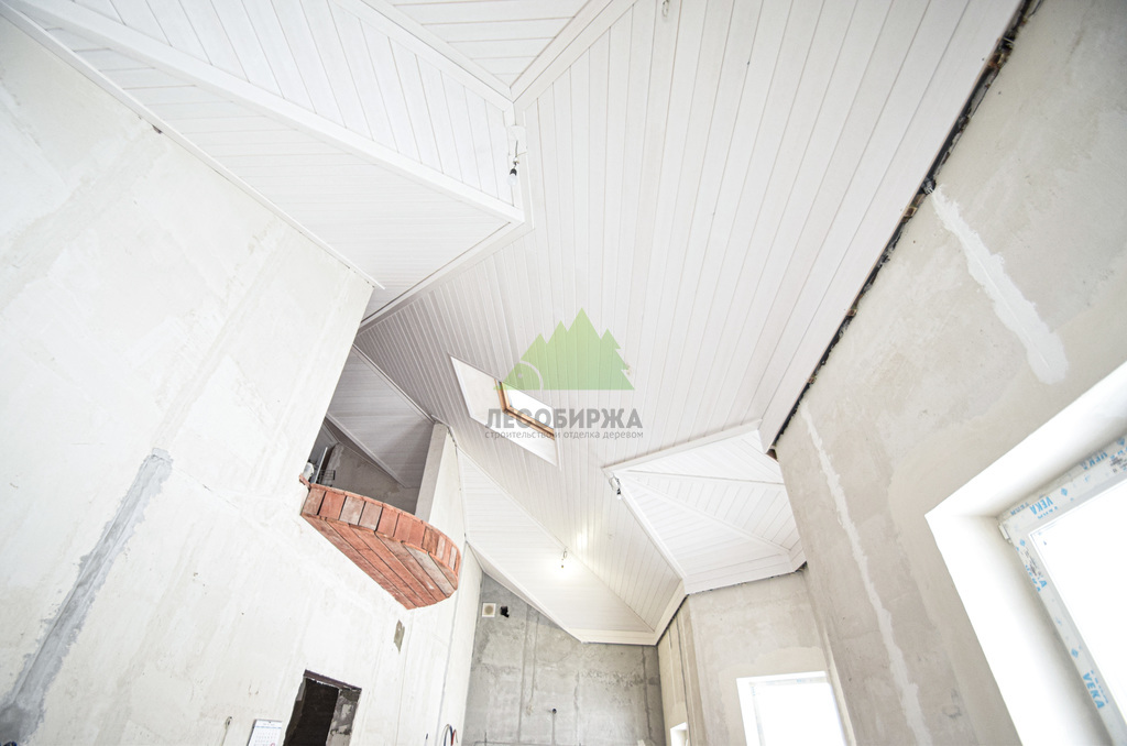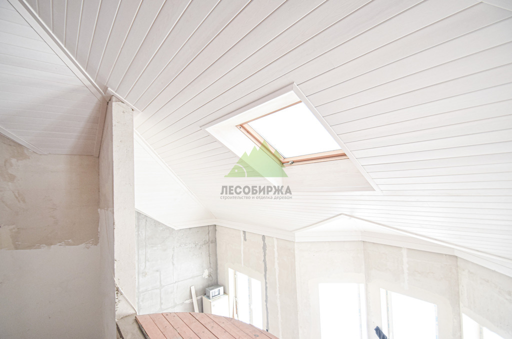 Любая качественная обшивка начинается с надежной подсистемы, или обрешетки. Для сложного потолка мансардного этажа ее устройство является фундаментальным этапом, который определяет долговечность и внешний вид всей конструкции. Наши мастера тщательно разработали схему обрешетки, учитывая все изгибы и наклоны потолка. Использовался только сухой, строганый брус, предварительно обработанный антисептиком и антипиреном, что гарантирует защиту от гниения, плесени и повышает пожаробезопасность. Каждый элемент подсистемы был выверен по уровню и плоскости с помощью лазерных нивелиров, что позволило создать идеальную основу для последующего монтажа вагонки. Правильно смонтированная подсистема также обеспечивает необходимый вентиляционный зазор между основной конструкцией и отделочным материалом, предотвращая скопление конденсата и продлевая срок службы всей отделки. Лесобиржа-Спб уделяет этому этапу особое внимание, ведь именно он является залогом безупречности финишной отделки.