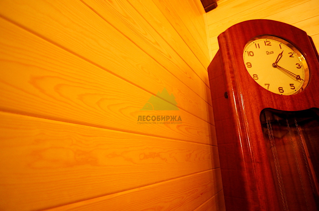Преимущества вагонки "Штиль" из сосны сорта А, использованной в проекте, включают: