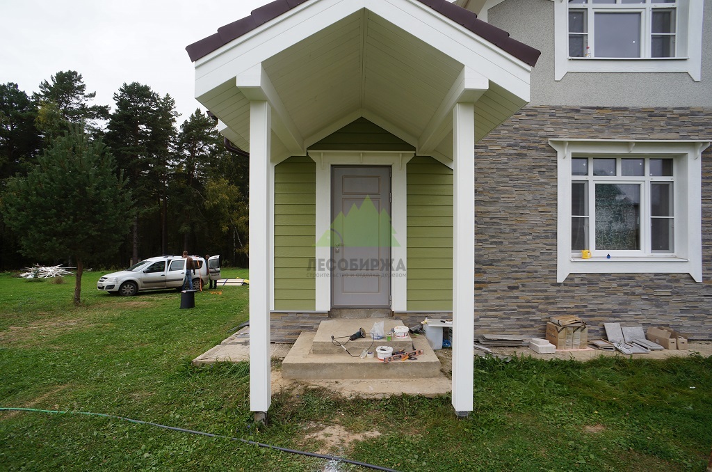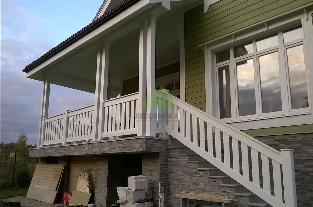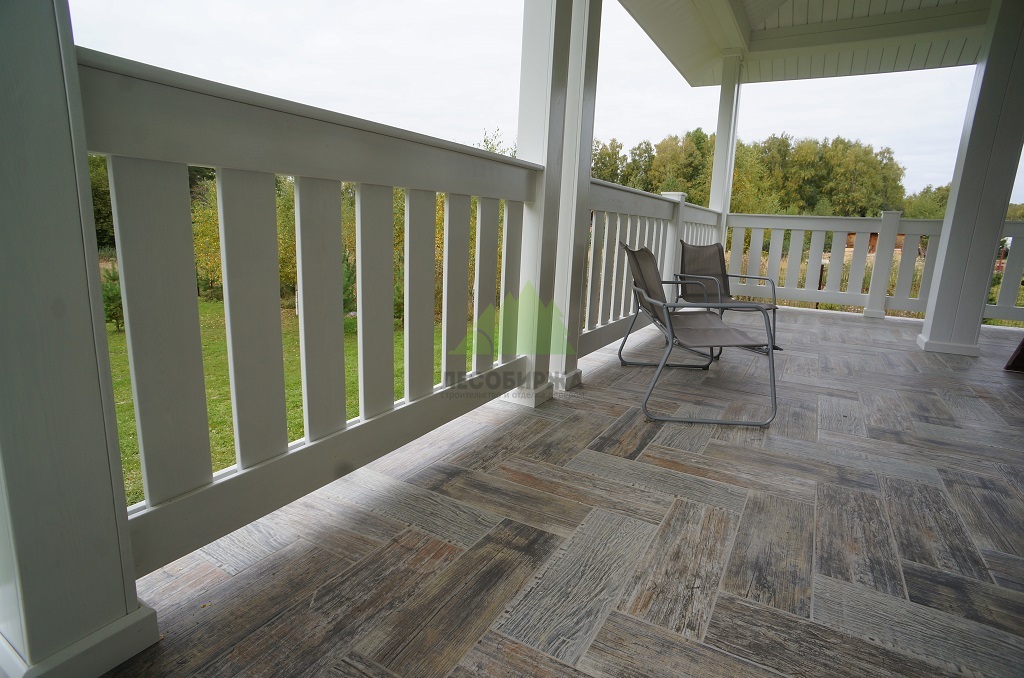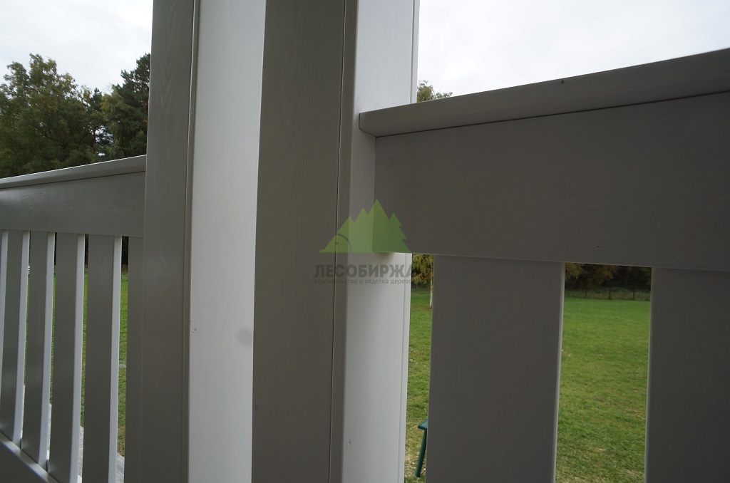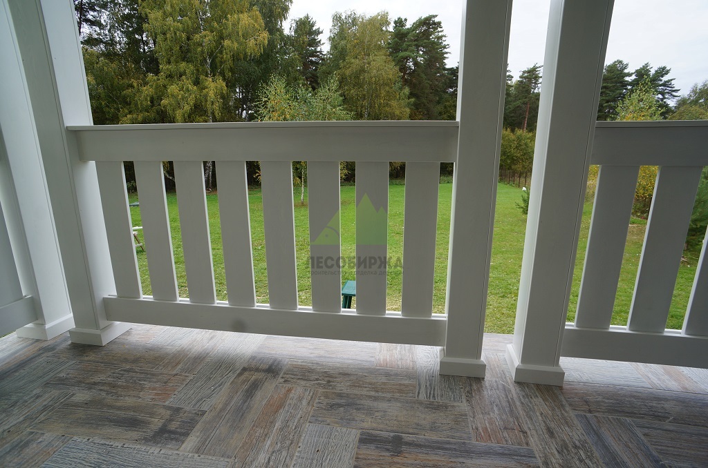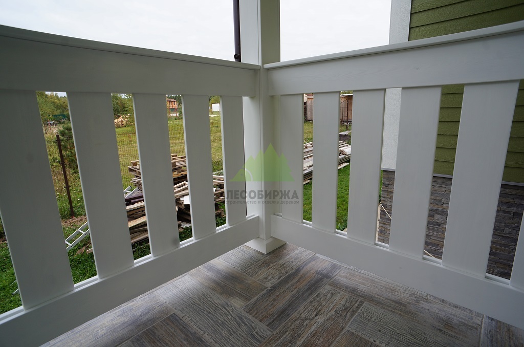 Проект включал также приятный бонус для владельцев дома: мы изготовили и установили новые ограждения для террасы из лиственницы. Эти ограждения, произведенные в нашем собственном столярном цеху, отличаются высокой прочностью и надежностью. Они были покрашены в малярном цеху Лесобиржи-Спб составом Vinha Tikkurila (цвет 9010 RAL), что гарантирует их долговечность и устойчивость к внешним факторам. В результате, терраса не только стала безопаснее, но и приобрела завершенный, стильный вид, идеально дополняющий обновленный фасад.