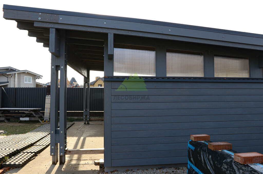 Клиент из живописного дачного посёлка "Страусиный Рай" в Ленинградской области обратился в Лесобиржу-Спб с запросом на строительство многофункционального хозяйственного блока. Основная задача заключалась не просто в возведении места для хранения, а в создании полноценного вспомогательного помещения, которое было бы максимально удобным, вместительным и эстетически привлекательным. Заказчик желал получить надёжную конструкцию, способную эффективно служить как для складирования садового инвентаря, инструментов и бытовых предметов, так и для других нужд, например, в качестве временного укрытия для техники. Важным требованием было использование долговечных и устойчивых к влажному климату Ленобласти материалов. В частности, клиент выразил пожелание использовать для внешней отделки скошенный планкен из лиственницы, который должен был быть качественно окрашен в определённый оттенок на производстве, чтобы обеспечить максимальную защиту и привлекательный внешний вид. Клиент хотел, чтобы новый объект гармонично дополнял существующий ансамбль построек и радовал глаз своей безупречной отделкой на протяжении многих лет. Основные характеристики объекта: