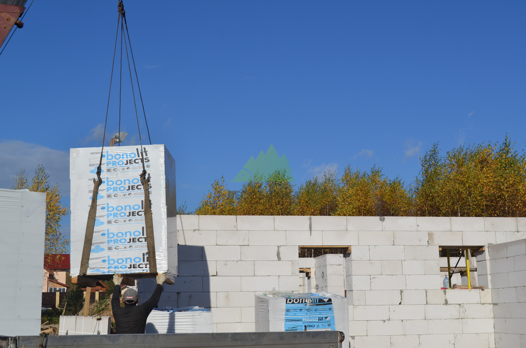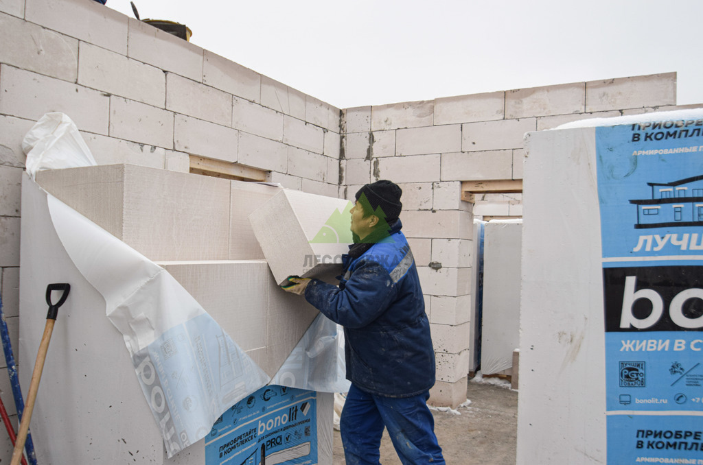 При возведении стен мы столкнулись с одним из ключевых моментов, демонстрирующих нашу приверженность качеству и клиентоориентированности. Изначально клиентом был выбран газосиликатный блок другого производителя, но при доставке на объект в Светлогорье мы обнаружили значительное количество боя и низкое качество материала. Лесобиржа-Спб незамедлительно проконсультировала заказчика, предложив переход на более дорогой, но значительно превосходящий по качеству и долговечности газобетонный блок "Bonolit" размером 625x400x250 мм. Это решение было принято совместно, и дальнейшее строительство велось исключительно с использованием блоков "Bonolit" и специализированного клея того же производителя. Первый ряд газосиликатного блока был уложен на пескобетон М300, обеспечивая идеальную ровность и прочность основания. Межрядное армирование стен выполнялось строго через каждые три ряда, с использованием арматуры класса А500С в два ряда, что существенно увеличивает несущую способность и устойчивость конструкции к нагрузкам. Для формирования оконных и дверных проемов использовались U-образные блоки "Bonolit", которые обеспечивают однородность материала стены и исключают мостики холода. Армирование междуэтажного распределительного монолитного пояса было выполнено по проекту, с использованием прочных каркасов, что гарантирует равномерное распределение нагрузки от верхних этажей и кровли.