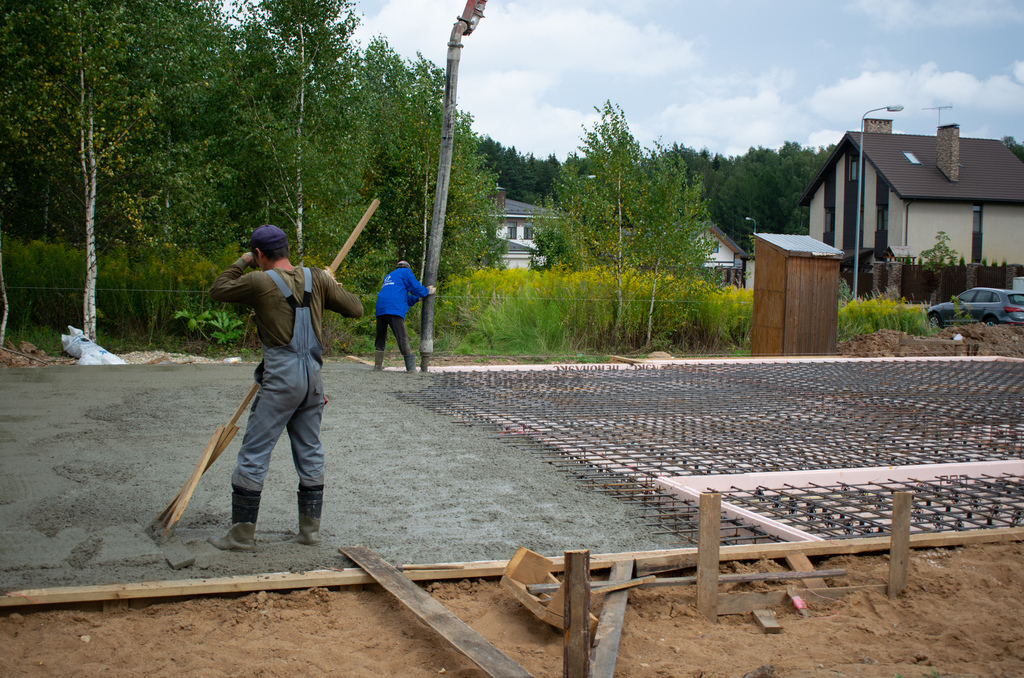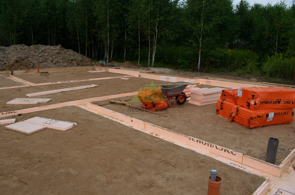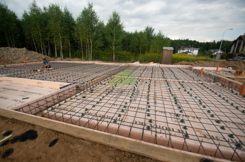 Следующим этапом стало устройство утепленной монолитной плиты. Мы использовали экструдированный пенополистирол "Пеноплэкс ГЕО" толщиной 50 мм, выбранный за его высокие теплоизоляционные свойства и устойчивость к влаге, что особенно актуально для региона Санкт-Петербурга и Ленинградской области с его переменчивым климатом. Опалубка для заливки плиты была тщательно смонтирована из обрезной доски сечением 150х40 мм, обеспечивая точность геометрических параметров. Армирование плиты – это ключевой аспект ее прочности. Ребра жесткости под несущими стенами были армированы согласно проекту, с применением арматуры класса А500С диаметрами 12, 8 и 6 мм. Основная сетка плиты выполнена из арматуры диаметром 12 мм с шагом 200 мм. Для вязки арматуры использовалась специальная вязальная проволока, гарантирующая надежное соединение всех элементов каркаса. После заливки бетона был строго выдержан технологический перерыв для полного набора прочности, что является неотъемлемым условием долговечности конструкции. Для исключения капиллярного подсоса влаги из грунта, который мог бы негативно сказаться на стеновых материалах, была выполнена высококачественная гидроизоляция с использованием материала "Гидроизол".