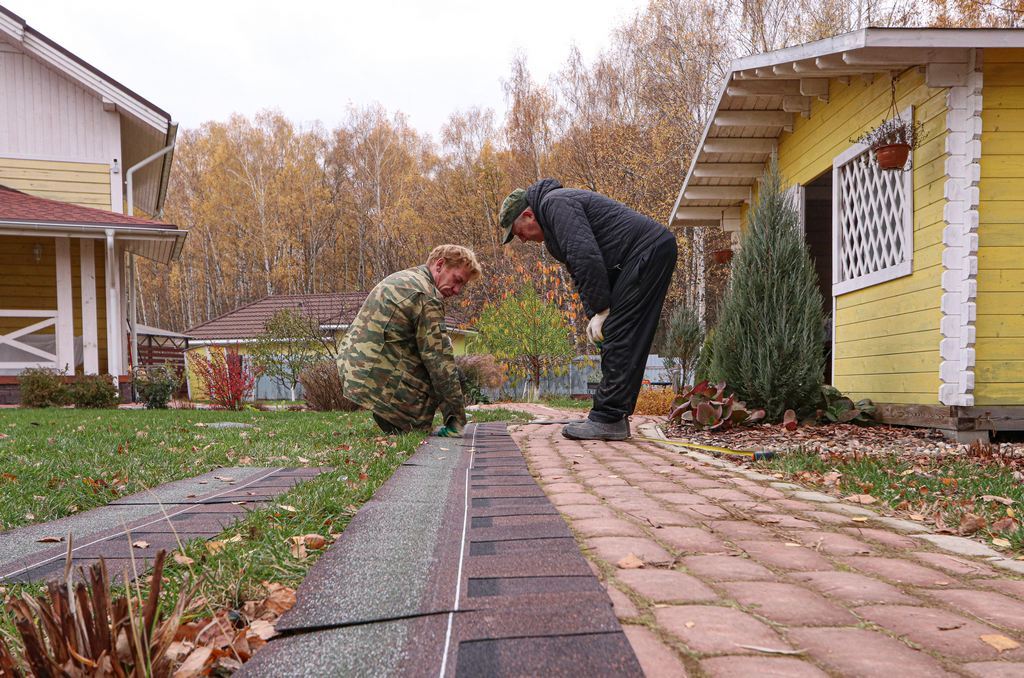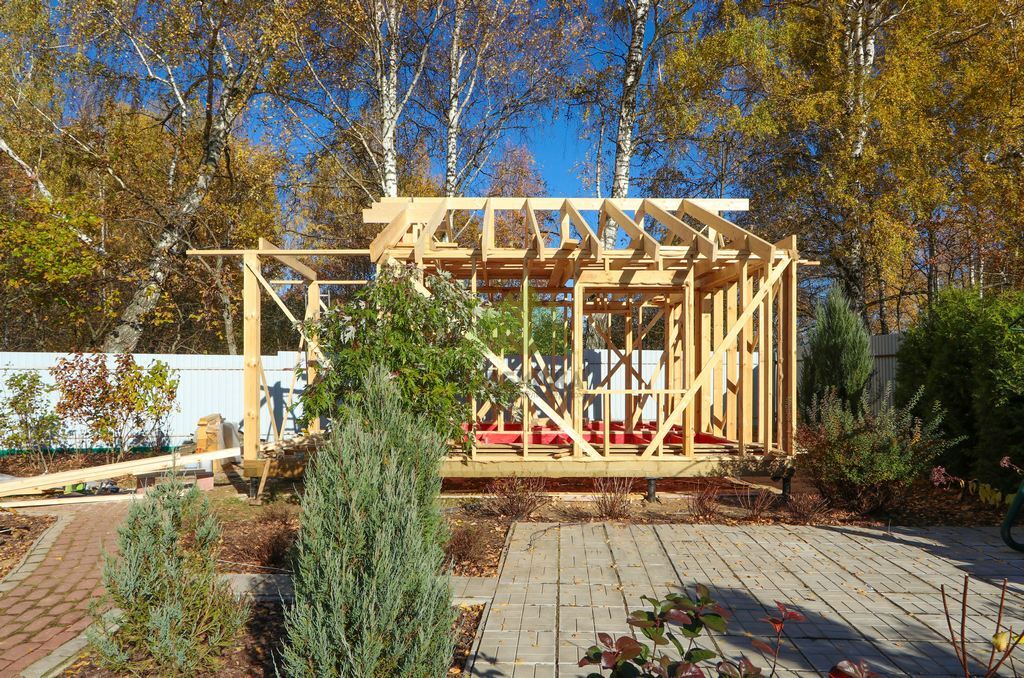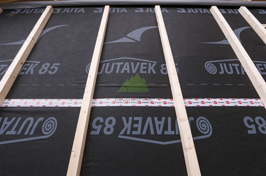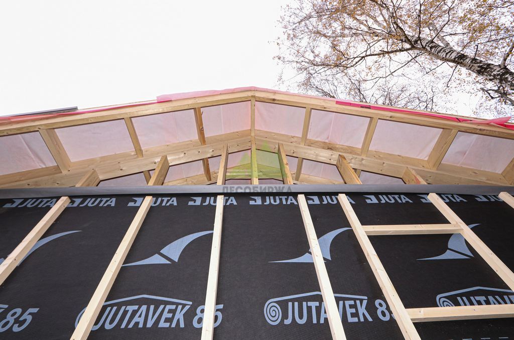 После возведения каркаса приступили к обустройству кровельной системы. Выбор надежной и эстетичной кровли — это ключевой момент для защиты строения от атмосферных осадков и сохранения тепла. На данном объекте была использована современная металлочерепица, отличающаяся долговечностью, легкостью монтажа и широкой цветовой палитрой, что позволило органично вписать баню в окружающий ландшафт. Наши кровельщики аккуратно и профессионально смонтировали стропильную систему, обеспечили качественную гидроизоляцию и пароизоляцию, а также уложили слой эффективного утеплителя. Это гарантирует не только отсутствие протечек, но и минимальные теплопотери через крышу, что особенно актуально для бани. Каждый элемент кровельного пирога, от контррейки до финишного покрытия, был установлен с соблюдением всех технологических нормативов, что обеспечивает долговечность и надежность всей конструкции крыши, устойчивой к сильным ветрам и обильным снегопадам, характерным для нашего региона.