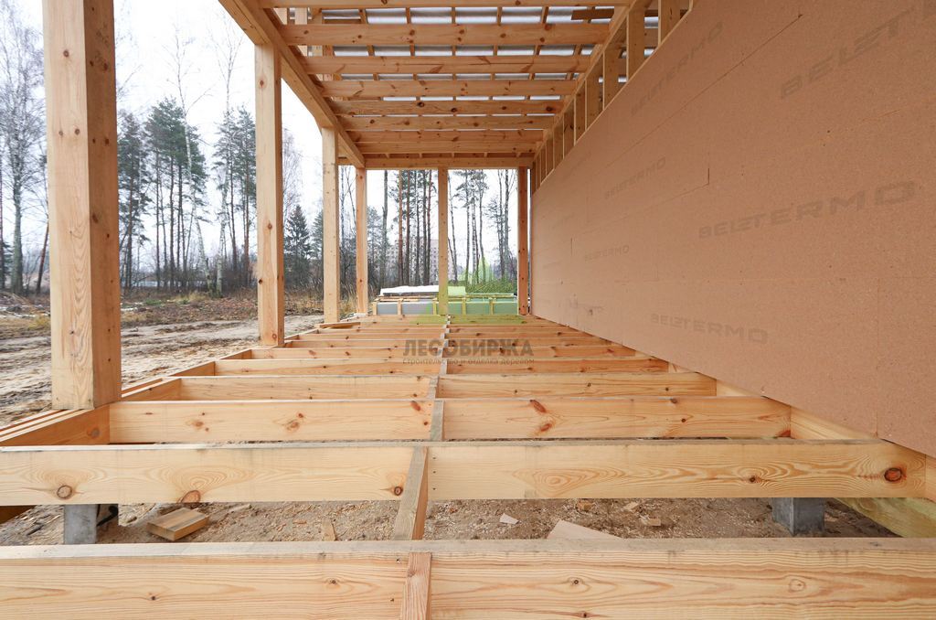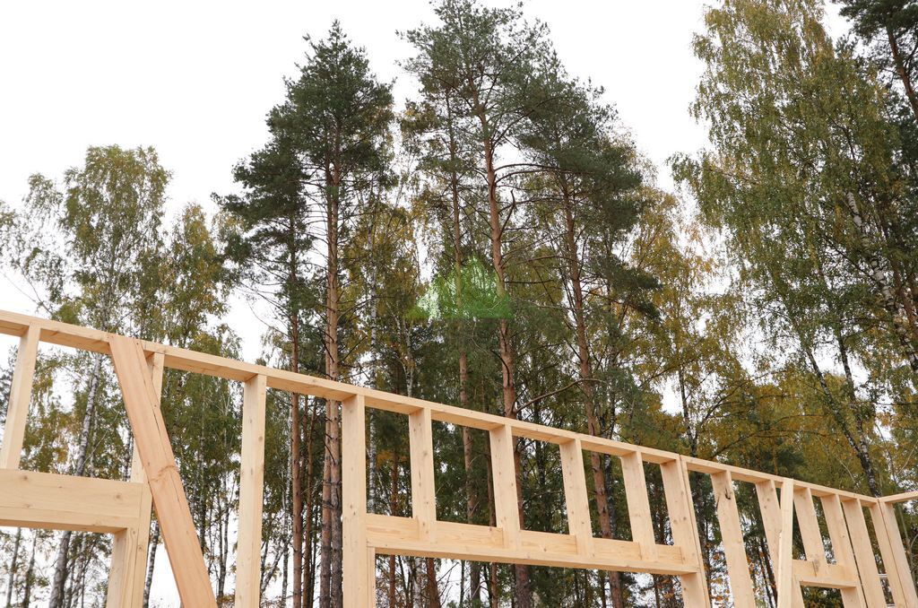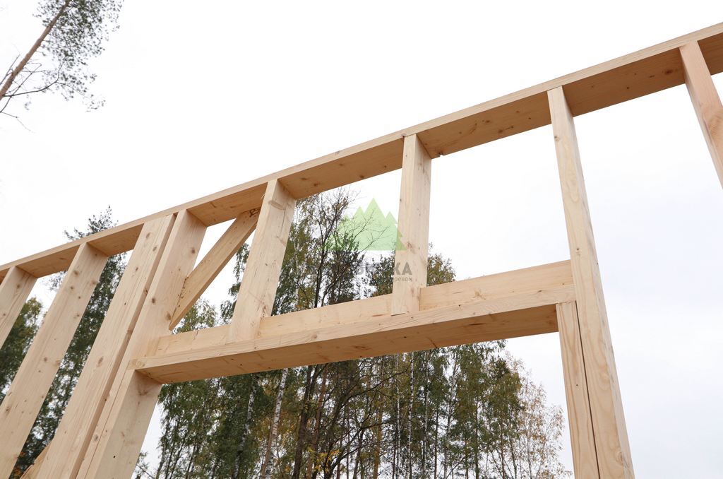 Для возведения каркаса мы использовали исключительно сухую строганную доску из сосны сечением 195х45 мм, прошедшую камерную сушку. Этот материал является эталоном качества в современном каркасном домостроении. Камерная сушка обеспечивает доске оптимальный уровень влажности (ниже 12%), что предотвращает усадку, деформацию и появление трещин в процессе эксплуатации. Строганная поверхность гарантирует идеальную геометрию и плотное прилегание элементов, исключая "мостики холода" и обеспечивая высокую прочность конструкции. Кроме того, использование такой доски значительно упрощает дальнейшую отделку и обеспечивает экологичность вашего будущего дома, что крайне важно для комфортной и здоровой жизни семьи.