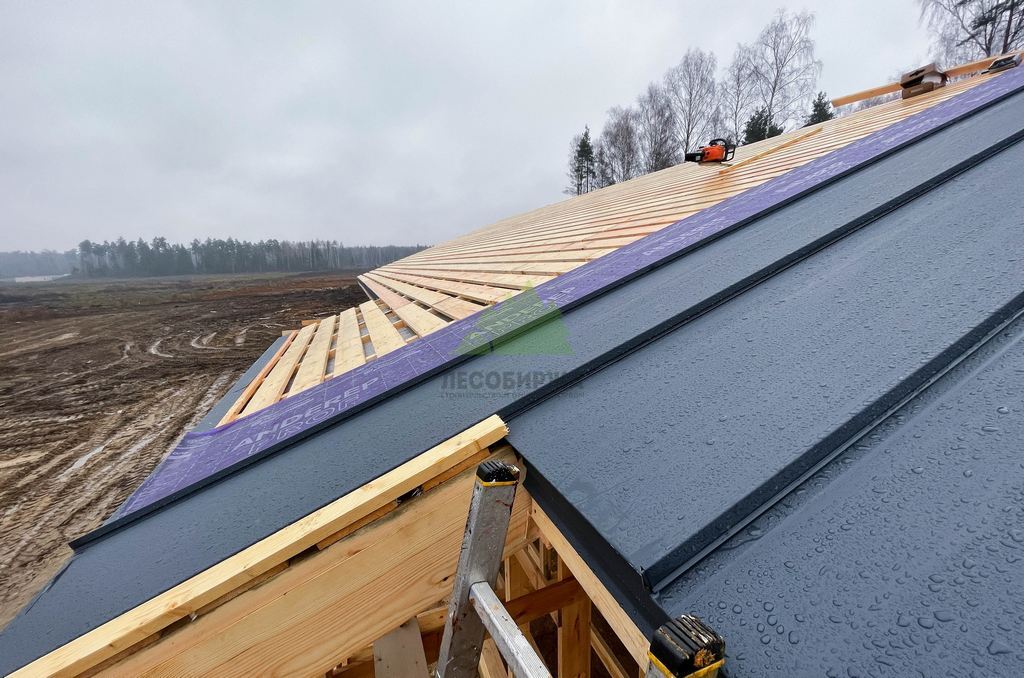 Для настила террасы мы применили доску из древесно-полимерного композита (ДПК). Этот инновационный материал объединяет в себе лучшие качества древесины и полимеров. Он не подвержен гниению, поражению насекомыми, не требует ежегодной покраски и пропитки, обладает высокой износостойкостью и стабильностью цвета. Доска ДПК приятна на ощупь, не скользит даже во влажном состоянии и прекрасно выдерживает суровые погодные условия нашего региона. При условии грамотного ухода, такая терраса прослужит не менее 15-20 лет, сохраняя свой эстетичный вид и функциональность. Двускатная крыша дома была выполнена из фальца – это не только строгое соответствие скандинавскому стилю, но и выбор в пользу максимальной надежности и герметичности. Фальцевая кровля отличается высокой прочностью, долговечностью, малым весом и отличной стойкостью к осадкам, обеспечивая идеальную защиту для всего строения.