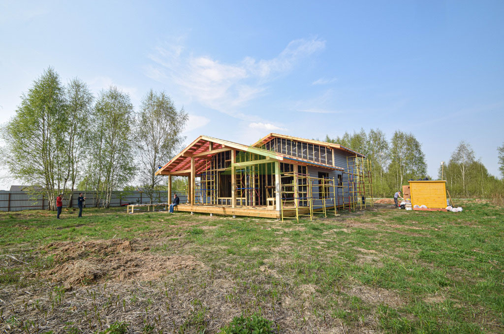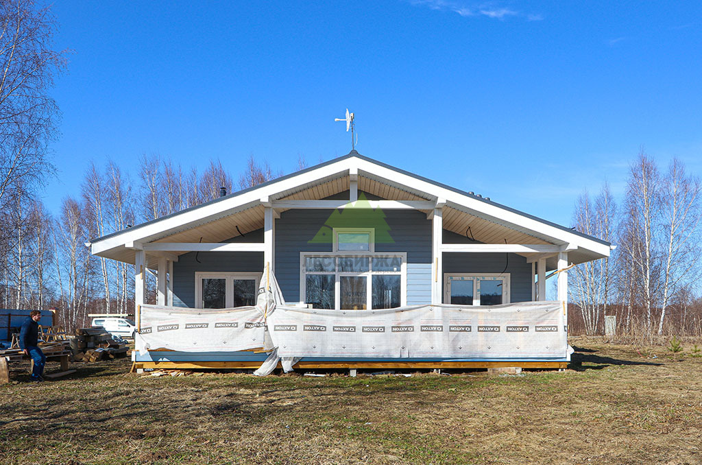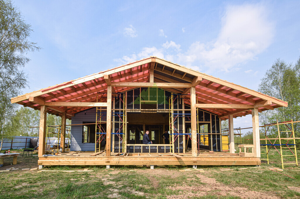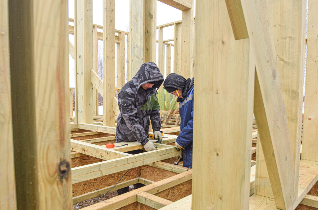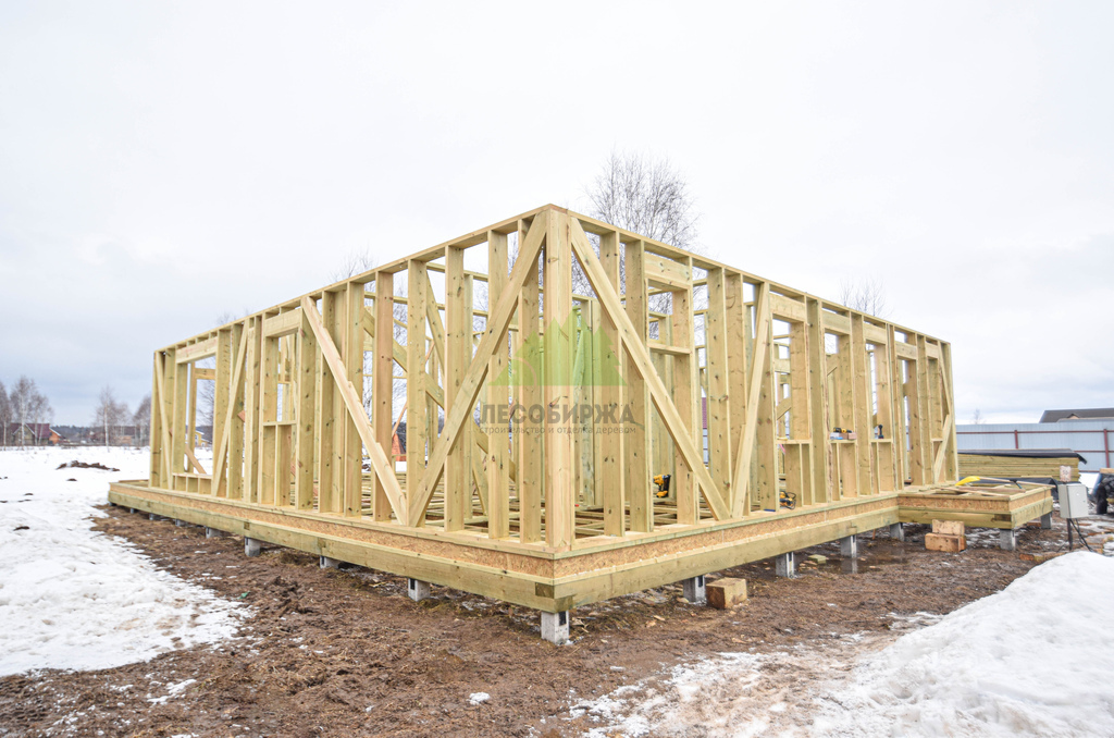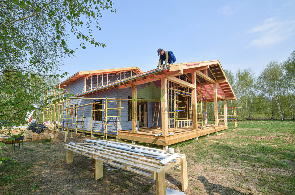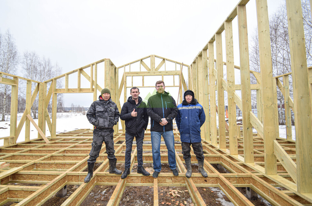 Сердцем любого каркасного дома является его силовой каркас. Для этого проекта были использованы тщательно отобранные пиломатериалы камерной сушки из хвойных пород дерева, обработанные современными антисептическими и огнебиозащитными составами на производственной базе Лесобиржи-Спб. Это гарантирует долговечность конструкции и безопасность эксплуатации. Сборка каркаса осуществлялась по заранее разработанным чертежам с ювелирной точностью. Каждый элемент – от обвязочного бруса до стропильной системы – был установлен с соблюдением всех норм СНиП. Были сформированы стены, перекрытия и крыша, создавая прочную и надежную коробку дома. Контроль качества производился на каждом этапе монтажа, что исключило любые отклонения от проекта и обеспечило идеальную геометрию здания.