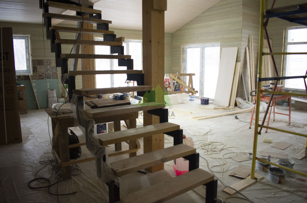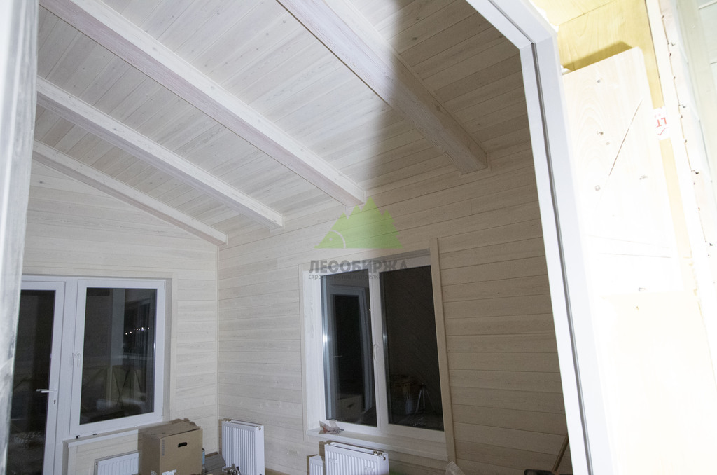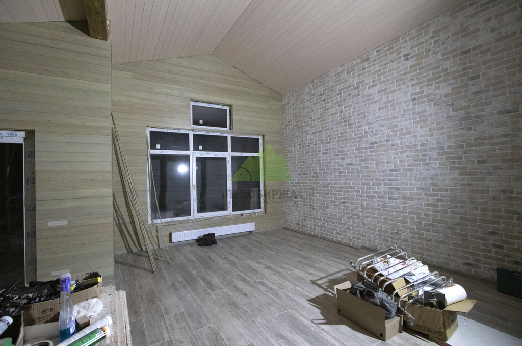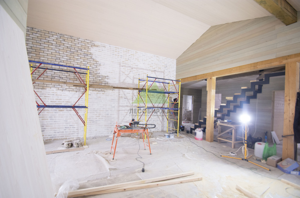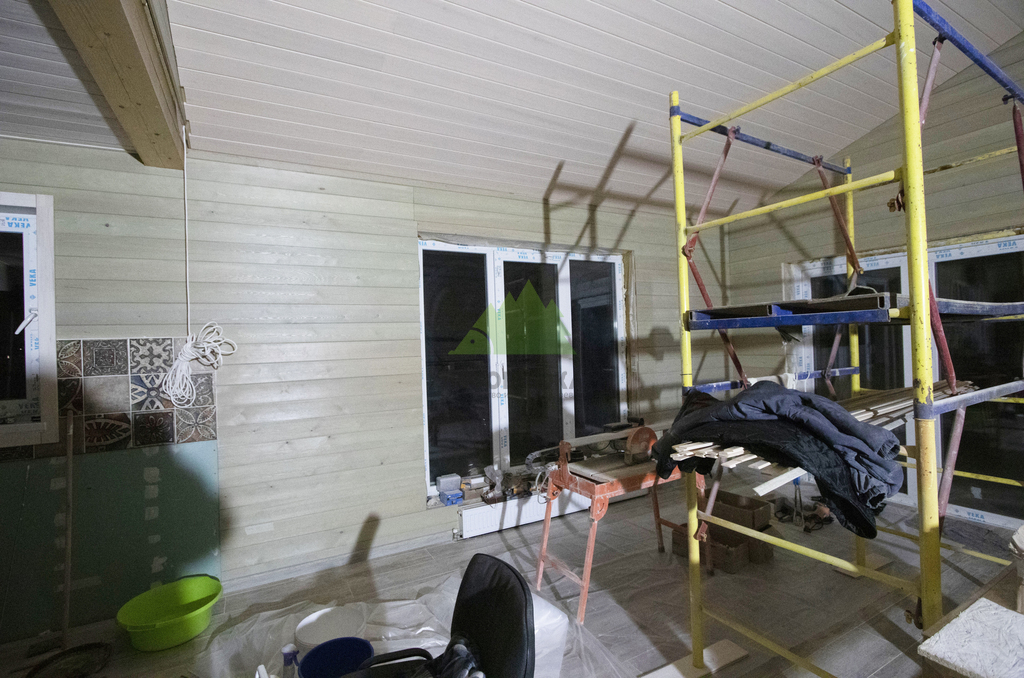 Внутренняя отделка – это создание атмосферы уюта и комфорта. После тщательной установки пароизоляционного контура и укладки базальтового утеплителя в стенах и перекрытиях, наши мастера приступили к чистовым работам. В зависимости от функционального назначения помещений, были использованы различные материалы. Стены в жилых комнатах обшиты имитацией бруса с финишной покраской, что создало ощущение тепла и натуральности. В санузлах и технических помещениях применялась влагостойкая гипсокартонная плита с последующей укладкой керамической плитки. Полы во всем доме были выполнены из шпунтованной доски, а затем покрыты высокопрочным лаком, сохраняющим текстуру дерева. Потолки были отделаны вагонкой, создавая единое стилистическое решение. Все работы по отделке выполнялись с высочайшей точностью и вниманием к деталям, чтобы каждый уголок дома радовал глаз клиента.