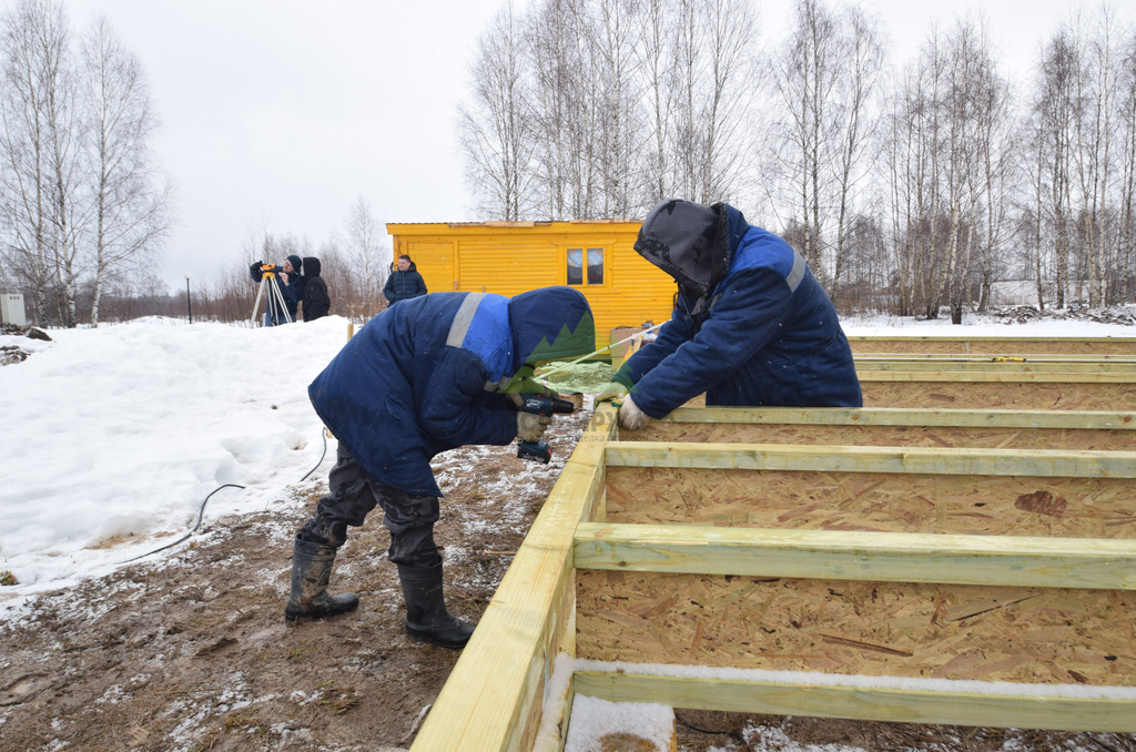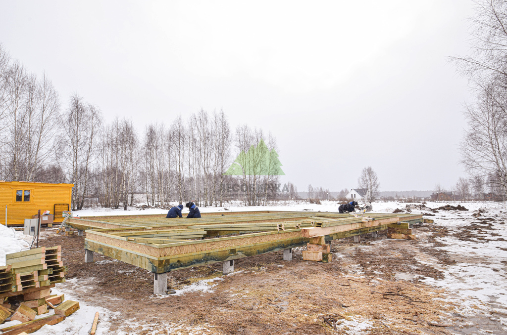 Следующим шагом стало устройство надежного и долговечного фундамента. Учитывая особенности грунтов в Ленинградской области, выбор пал на свайно-винтовой фундамент. Этот тип фундамента зарекомендовал себя как оптимальное решение для каркасного строительства: он не только экономичен и быстр в монтаже, но и крайне устойчив к пучению грунтов, что критически важно в нашем регионе. Наши бригады провели геологические изыскания, точно рассчитали количество и глубину заложения свай, а затем профессионально их установили с соблюдением всех технологических нормативов. Каждая свая была забетонирована и усилена ростверком, обеспечивая идеальную горизонтальную основу для будущего дома.