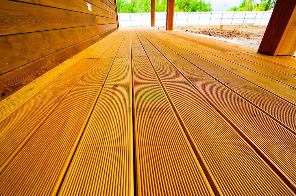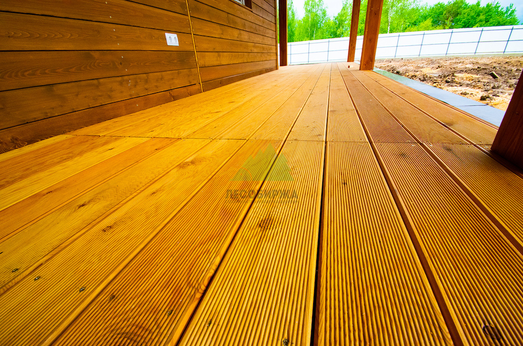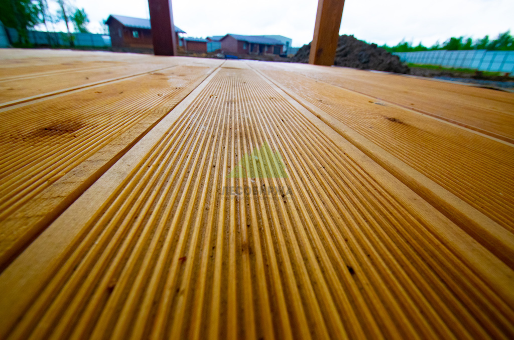 Особое внимание было уделено профилю доски — "Вельвет". Его ребристая поверхность, напоминающая одноименную ткань, играет ключевую роль в обеспечении безопасности. Эти бороздки значительно увеличивают сцепление с поверхностью, предотвращая скольжение даже во влажную погоду или после дождя. Это критически важно для гостиничного комплекса, где безопасность гостей является приоритетом номер один. Кроме того, такой профиль придает террасе особый, выразительный вид, добавляя ей тактильной привлекательности и оригинальности, что выгодно отличает её от традиционных решений.
