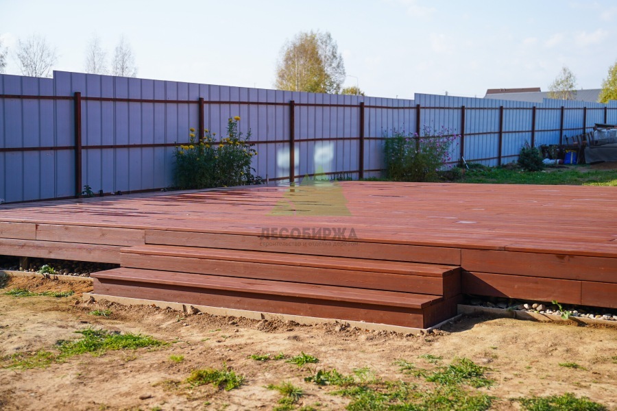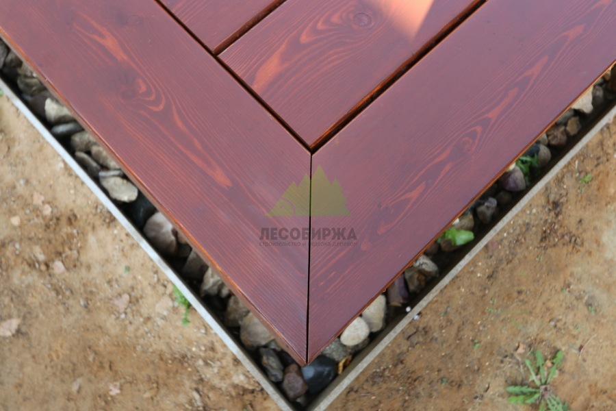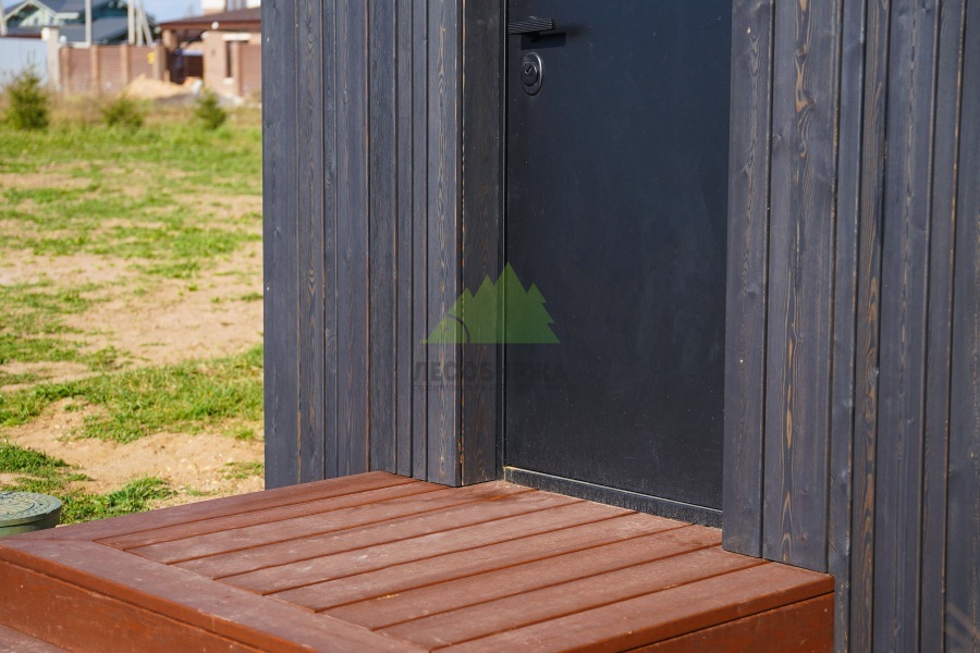 При постройке придомовой террасы мы использовали тот же проверенный материал – лиственничный прямой планкен сорта АВ размером 145х20х3000 мм. Толщина в 20 мм оптимально подходит не только для облицовки, но и для устройства напольных покрытий, обеспечивая необходимую прочность и стабильность. Длина досок в 3000 мм позволила минимизировать количество стыков на конструкции, что создает более монолитный и аккуратный вид. Для монтажа террасы, как и для гаража, был успешно применен наш надежный крепеж "LesFix" со стопором, гарантируя исключительную долговечность и устойчивость к нагрузкам.