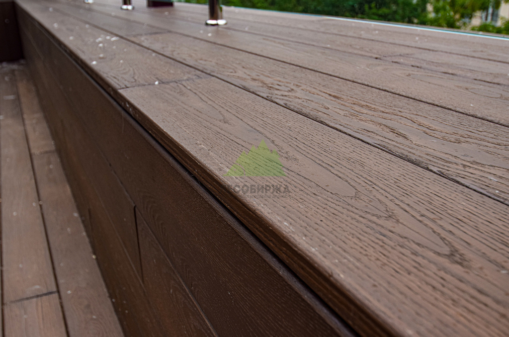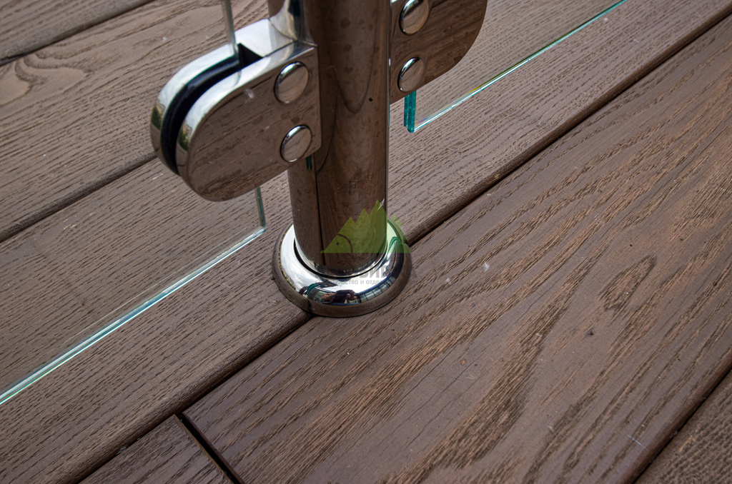 Выбор террасной доски для этого проекта был обусловлен высокими требованиями к долговечности и эстетике. Мы в Лесобирже-Спб сотрудничаем только с проверенными поставщиками, которые гарантируют безупречное качество материалов. Для настила пола была выбрана террасная доска "вельвет" из термоясеня, предварительно окрашенная на производстве. Термоясень – это материал, прошедший специальную термическую обработку при высоких температурах, что кардинально меняет его свойства. Он становится удивительно прочным и стабильным, абсолютно равнодушным к любым капризам погоды: проливным дождям, снегопадам, морозам или летнему зною. Термоясень способен выдерживать колоссальные механические нагрузки, не подвержен воздействию жуков-древоточцев и грызунов, а также абсолютно устойчив к гниению и образованию плесени. Это экологически чистый материал, безопасный для здоровья человека и окружающей среды. Профиль "вельвет" с мелким рубчиком обеспечивает отличное сцепление подошвы обуви с поверхностью, предотвращая скольжение и повышая безопасность. Эти доски не только великолепны с эстетической точки зрения, но и практически не имеют ограничений по сроку службы, требуя лишь периодической обработки маслом для сохранения первозданного вида.