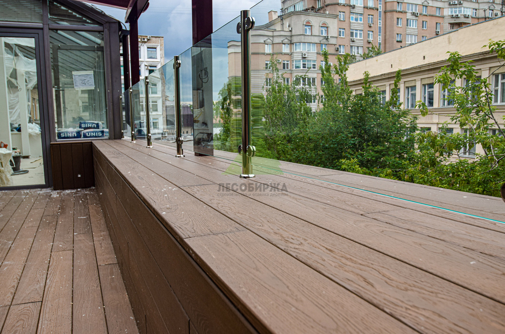 Перед специалистами Лесобиржи-Спб стояла комплексная задача: выполнить полный цикл отделочных работ – от обустройства пола и стен до монтажа парапетов и ограждений. Наш подход заключался в том, чтобы превратить обычные балконы в полноценные террасы, создающие атмосферу загородного уюта прямо в центре мегаполиса. Деревянная отделка, тщательно подобранная клиентом, стала ключевым элементом в достижении этой цели. Заказчик, с присущей банку ответственностью, уделил особое внимание выбору материалов, требуя максимальной износостойкости. Ведь новые террасы должны были выдерживать интенсивные механические нагрузки от постоянного потока людей, а также успешно противостоять агрессивным погодным условиям Санкт-Петербурга – перепадам температур, повышенной влажности, дождям, снегу и летнему солнцу, несмотря на наличие легкого раздвижного навеса.