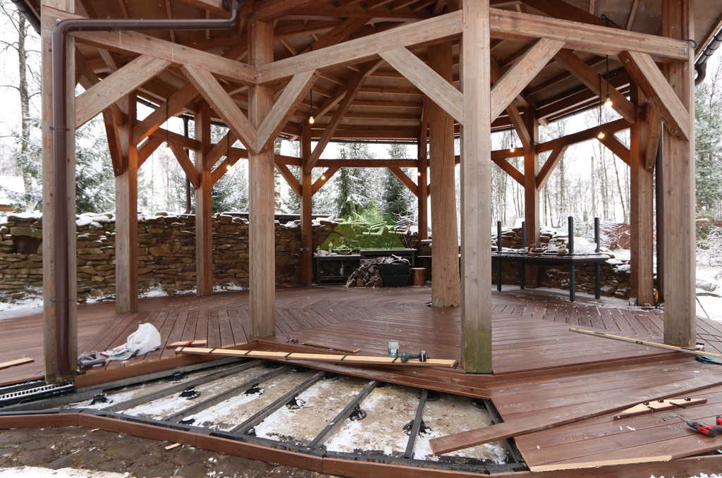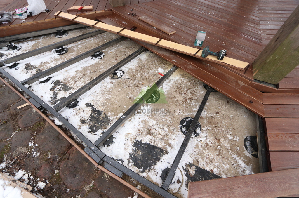 Реконструкция террасы под ключ — демонтаж, новое основание и монтаж настила. Москва