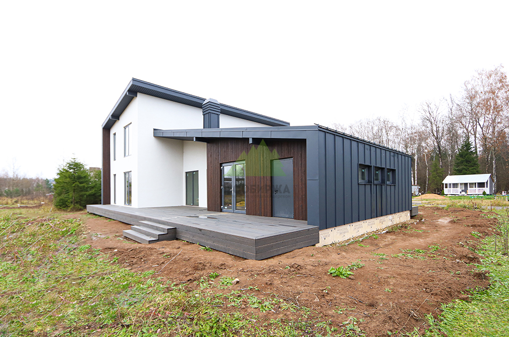 Мы уверены, что дом с таким комбинированным фасадом и просторной террасой вызовет восхищение у многих и послужит источником вдохновения для тех, кто ищет идеальное решение для своего загородного участка. Именно поэтому этот проект представлен в нашем портфолио как "Готовое Решение", демонстрирующее возможности и уровень мастерства нашей команды.
