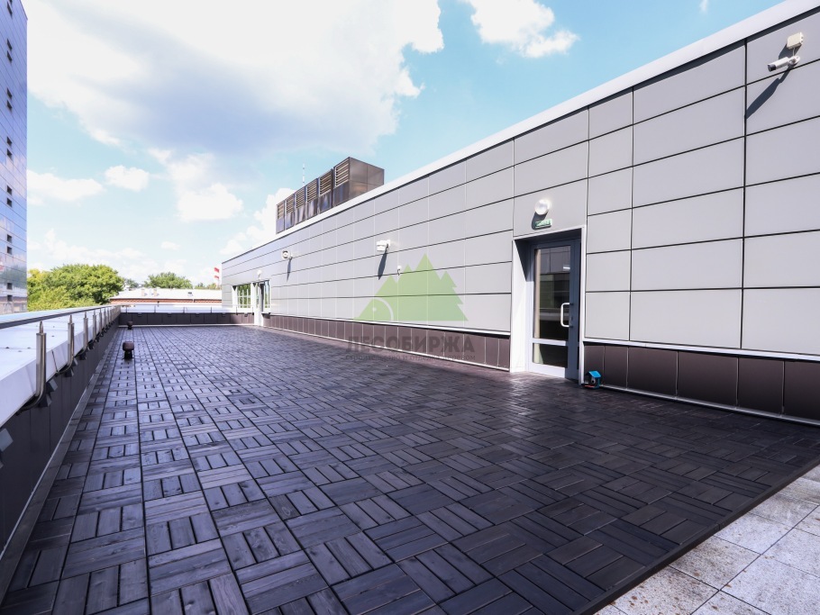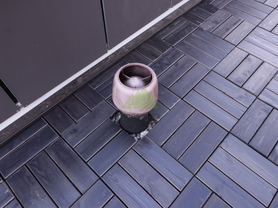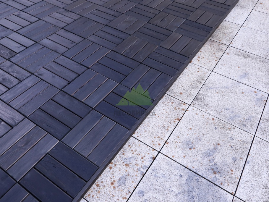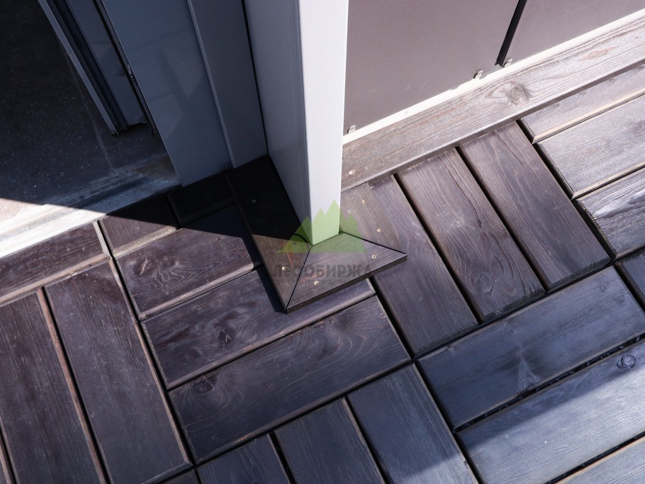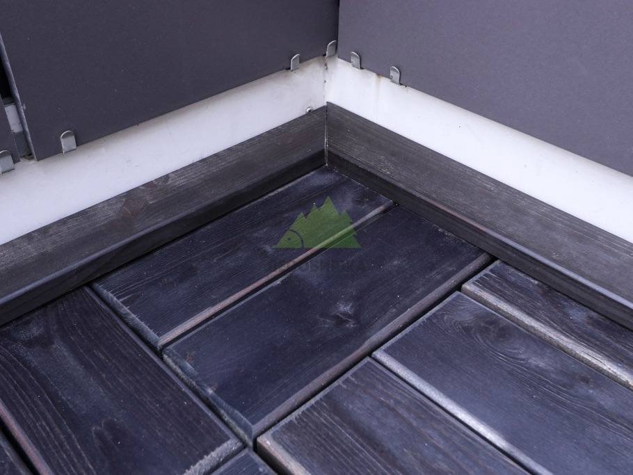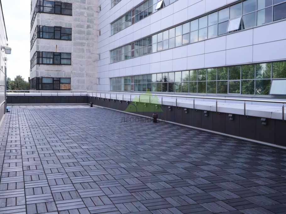 Монтаж модулей на эксплуатируемой кровле – это процесс, требующий точности и аккуратности. Наши мастера укладывали их непосредственно на подготовленную бетонную стяжку, обеспечивая идеальное прилегание и ровность поверхности. Важным элементом монтажа является система крепления "шип-паз", благодаря которой модули надежно соединяются между собой, образуя единое, прочное и стабильное покрытие. Эта система исключает смещение элементов и образование щелей, гарантируя долговечность и безопасность эксплуатации террасы. По периметру крыши, а также в зонах примыкания к парапету и участкам с керамогранитным покрытием, модули были дополнительно поджаты специальными планками из термированной сосны. Это решение не только придает завершенность и эстетичность всей конструкции, но и выполняет важную функциональную роль, надежно фиксируя крайние элементы и предотвращая их деформацию или смещение в процессе эксплуатации. Такой подход обеспечивает безупречный внешний вид и максимальную надежность покрытия.