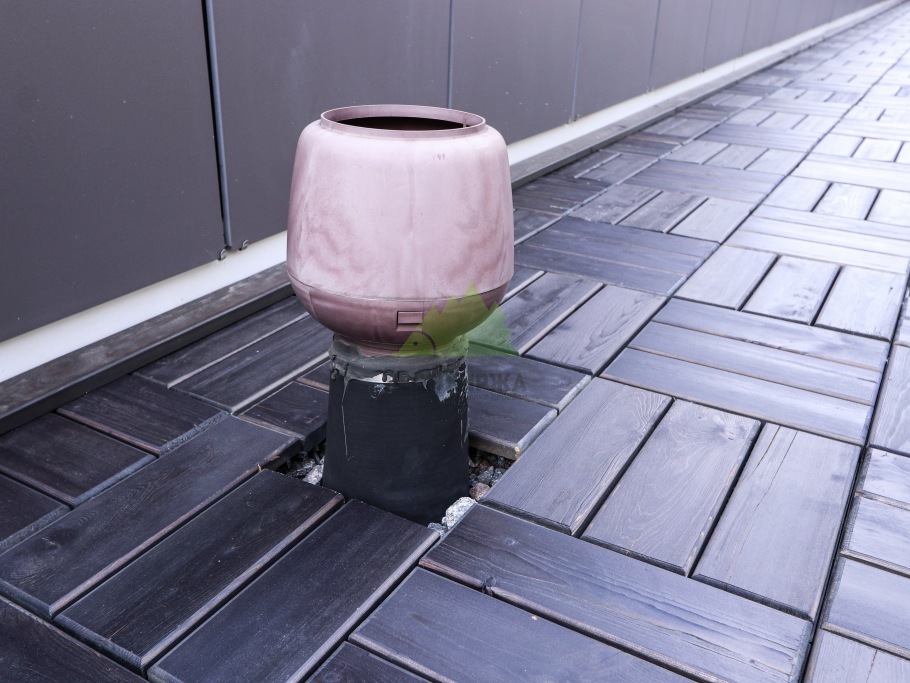 Изготовление садового паркета и облицовочных модулей для эксплуатируемой кровли – это многоэтапный процесс, требующий высокой квалификации и современного оборудования. Все работы по производству и покраске осуществлялись на собственном производстве "Лесобиржи-Спб", что позволяет нам гарантировать безупречное качество на каждом этапе. Модули состоят из гибкой пластиковой основы, которая обеспечивает не только легкость монтажа, но и эффективный отвод воды, предотвращая ее застой под покрытием. На эту основу с тыльной стороны надежно закреплены саморезами деревянные ламели – планки из термированной сосны в сорте АВ. Выбор сорта АВ для данного проекта был обоснован не только его экономической целесообразностью, но и эстетикой. В древесине этого сорта присутствуют живые сучки и небольшие смоляные кармашки, которые не влияют на прочность, но придают террасе особую природную фактуру и натуральность, подчеркивая естественное происхождение материала и его уникальный рисунок. Именно эти детали делают каждый модуль неповторимым, создавая на кровле по-настоящему живое и дышащее покрытие.