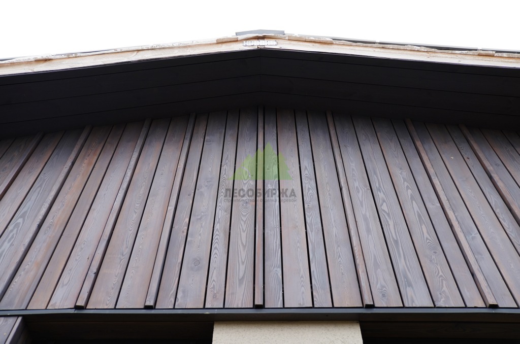 Поддерживающие навес над террасой столбы, а также свесы кровли и внутреннюю обшивку навеса мы обшили прямым планкеном из отборной "северной сосны" сорта АВ. Северная сосна, произрастающая в суровых условиях, отличается повышенной плотностью и прочностью по сравнению с древесиной из южных регионов. Этот факт подтверждают многочисленные исследования, включая фундаментальные труды академика Б.П. Уголева в области древесиноведения. Использование такой сосны гарантирует не только превосходный внешний вид, но и высокую эксплуатационную надежность конструкций.