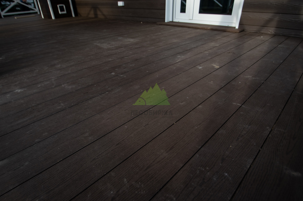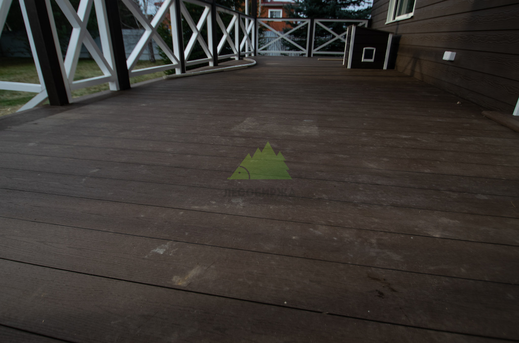 Главным требованием клиента было получение долговечного, неприхотливого в уходе и при этом визуально безупречного покрытия, которое не потребует ежегодных покрасок и значительных вложений в ремонт. ДПК доска с 3D-эффектом стала идеальным выбором. Этот материал, имитирующий текстуру состаренной древесины с ярко выраженным узором годичных колец и переплетением волокон, обладает неповторимым шармом натурального дерева, но лишен его недостатков. Выбранный цвет "темный шоколад" придал террасе особую глубину и элегантность, создав гармоничный ансамбль с природным ландшафтом Федоровской усадьбы и архитектурой дома.