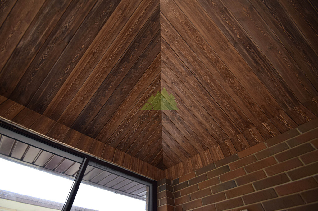 Механическое браширование: Специальная металлическая щетка деликатно выскребает мягкие волокна древесины с поверхности доски, обнажая более твердые годичные кольца. Это придает материалу выраженную рельефную текстуру.