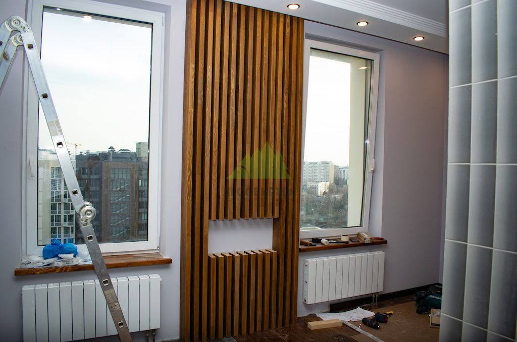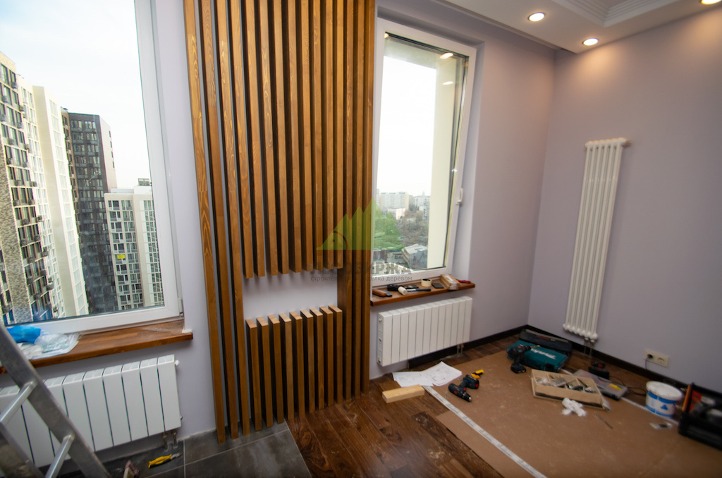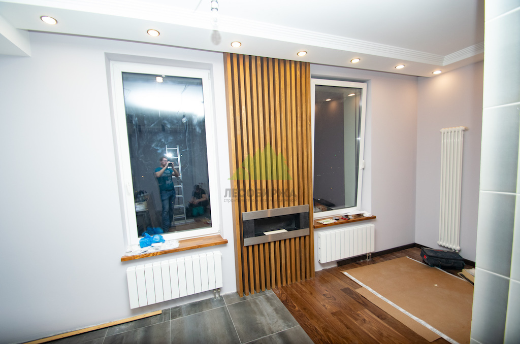 Монтаж перегородки и ниши для эко-камина в Усадьбах в Стрешево стал наглядным подтверждением нашего профессионализма. Наши столяры, работая в тандеме, посвятили этому проекту почти 19 часов, демонстрируя высочайшую концентрацию и мастерство. Каждая рейка была выверена по уровню с миллиметровой точностью, стыки подогнаны идеально, а вся конструкция обрела монолитный, но при этом воздушный вид. Особое внимание было уделено интеграции ниши для камина, где требовалась максимальная точность для безопасной и эстетичной установки оборудования. Результат превзошел все ожидания заказчика: гостиная преобразилась, обретя четкое, но ненавязчивое зонирование и современный акцент в виде камина, обрамленного натуральным деревом.