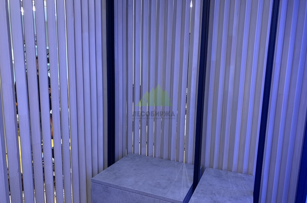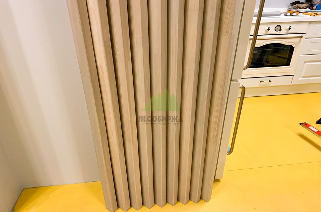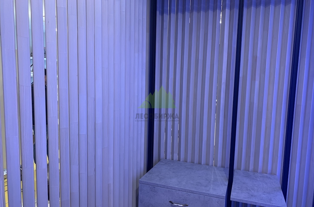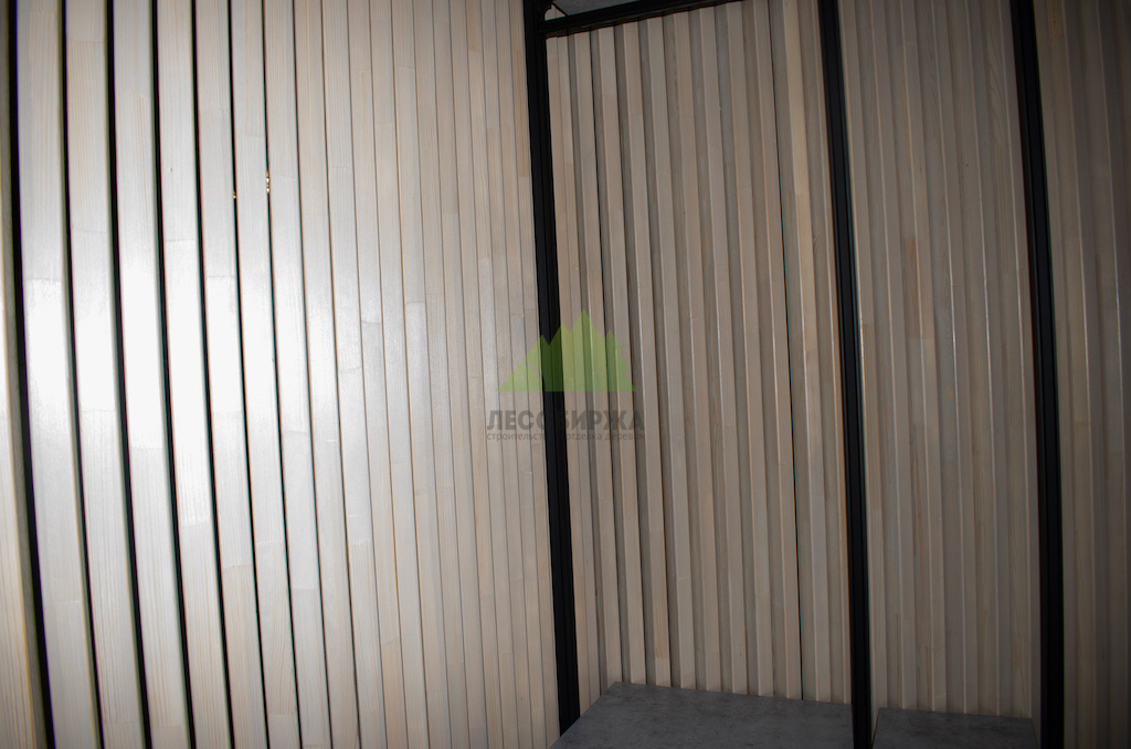4. Широкие возможности для финишной отделки: Мебельный щит из сосны прекрасно впитывает различные лакокрасочные материалы. Для данного проекта бруски были окрашены в нашем специализированном малярном цехе по элитной лаковой схеме в актуальном цвете TV 5062. Это покрытие не только придает перегородке изысканный вид, но и обеспечивает дополнительную защиту древесины от влаги и ультрафиолета, сохраняя насыщенность цвета на долгие годы.