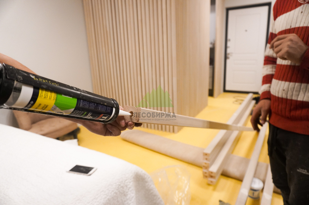 На этапе монтажа, наша бригада столкнулась с неожиданным вызовом: потолки, которые по внешнему виду казались монолитными бетонными, на деле оказались гипсовыми и не обладали достаточной несущей способностью для надежной фиксации массивной конструкции. Это была ситуация, требующая немедленного экспертного решения. Наши специалисты, обладающие многолетним опытом работы с разнообразными строительными основаниями, оперативно разработали и внедрили усиленную систему крепления. Для обеспечения максимальной надежности и долговечности, мы использовали технологию проклейки основания на потолке специализированными полимерными составами, которые значительно увеличивают адгезию и прочность фиксации. Дополнительно были установлены скрытые металлические закладные, которые прочно крепились к несущим элементам перекрытия. Каждая рейка фиксировалась к полу через просверленное отверстие под металлический штырь, который также закреплялся на клеевой герметик сверху и снизу. Такая комплексная система крепления придала перегородке не только безупречный декоративный вид, но и исключительную функциональную надежность. Теперь на нее можно смело опираться, а при необходимости – крепить дополнительные аксессуары или элементы декора без опасения.
