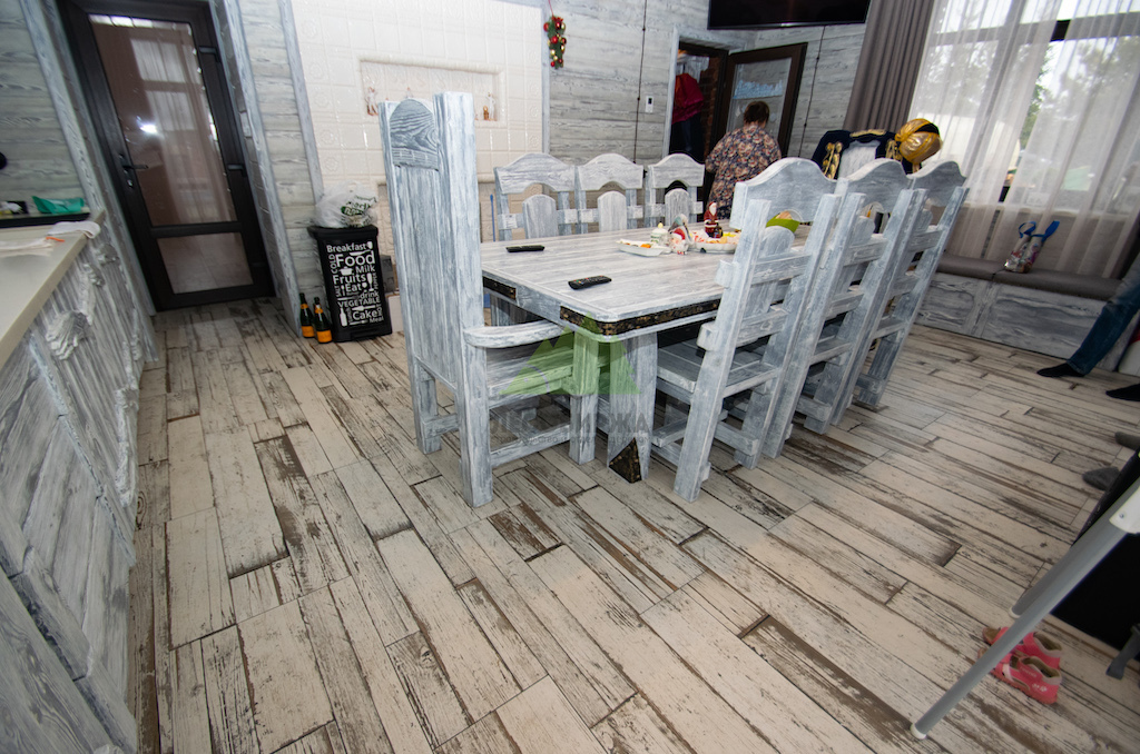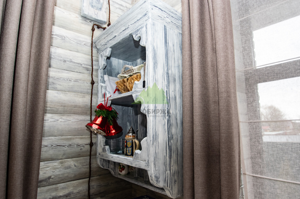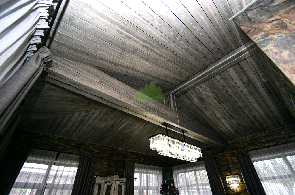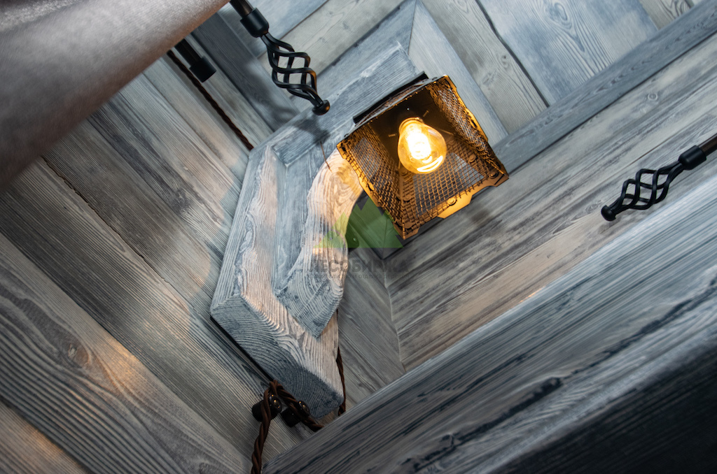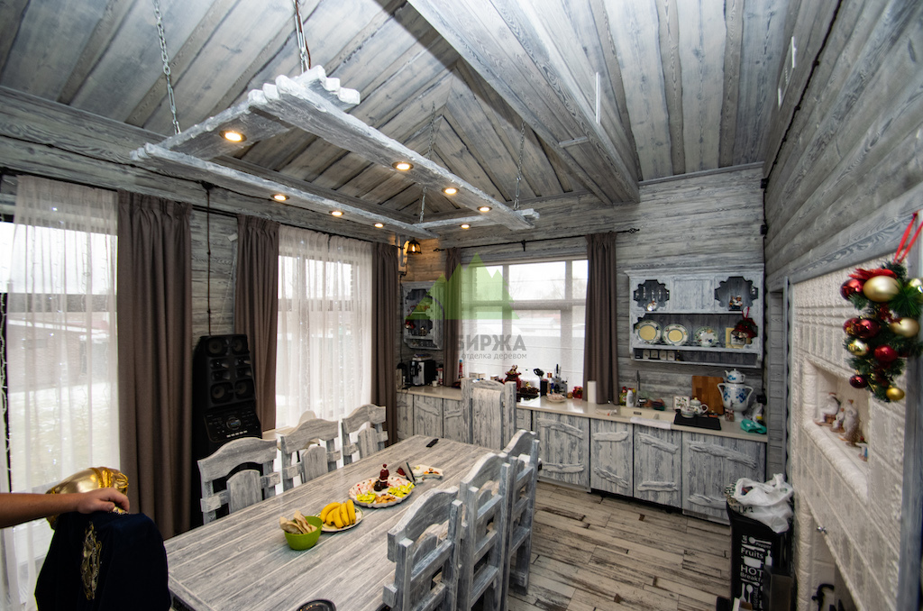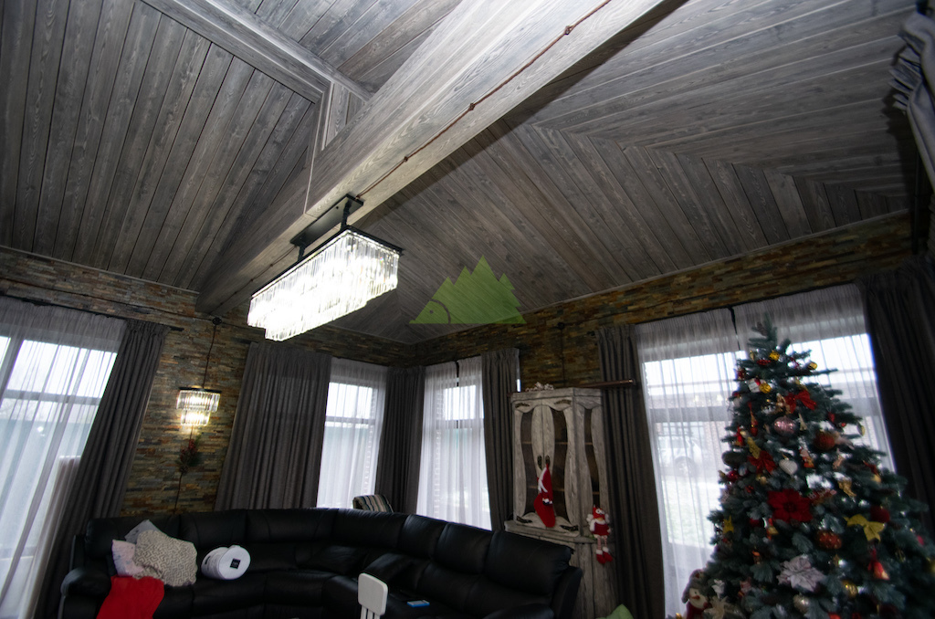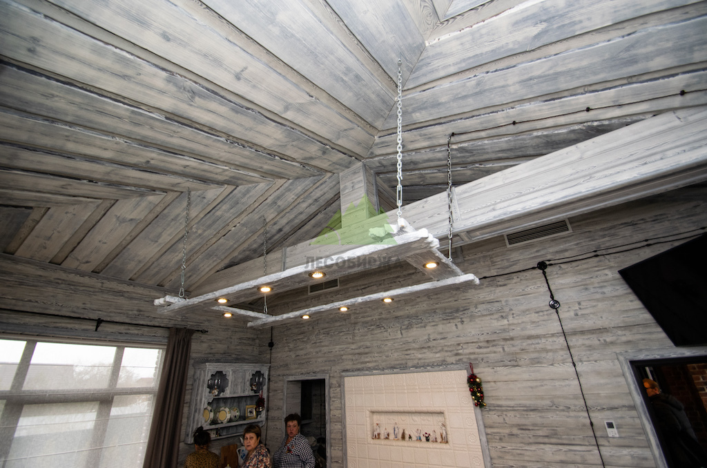 Выбор материалов для винтажного интерьера требует особой тщательности, ведь они должны не только соответствовать стилю, но и быть долговечными, экологичными. Мы остановили свой выбор на натуральном дереве, как на идеальном решении. Для отделки был использован высококачественный планкен из сосны сорта А. Чтобы придать ему ту самую "изюминку" и элегантность времени, наши мастера применили уникальную технологию патинирования и браширования, разработанную специалистами Лесобиржи-Спб и известную как "Зимняя Сказка".