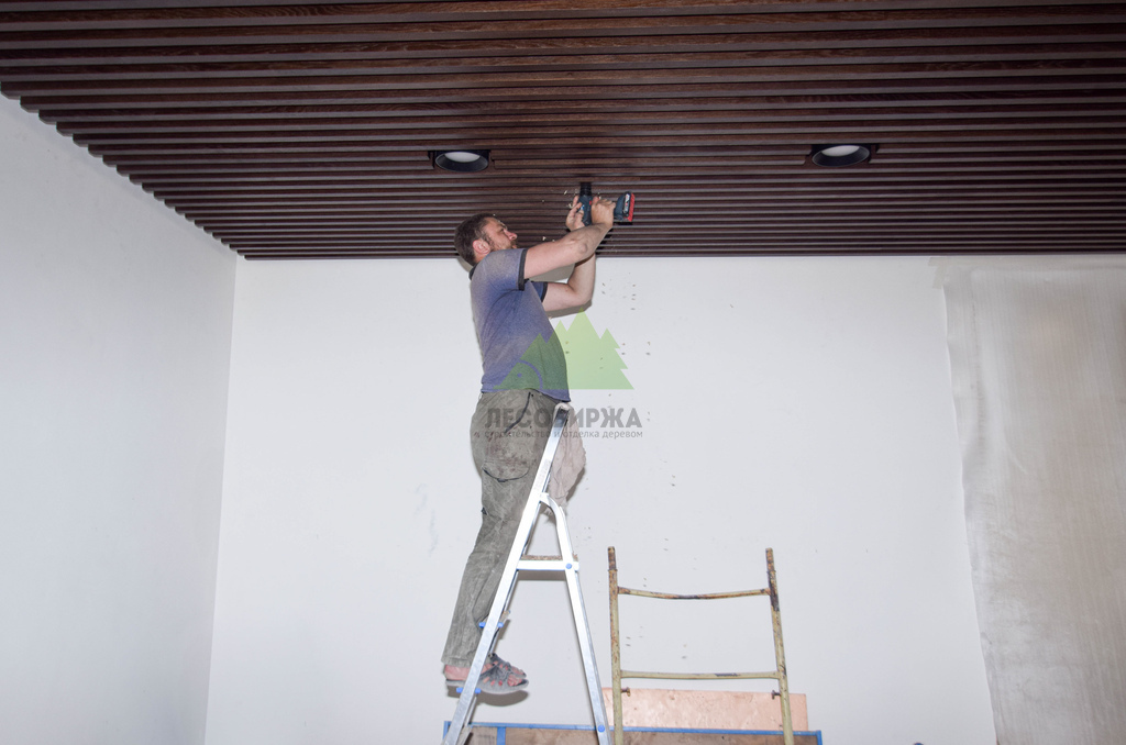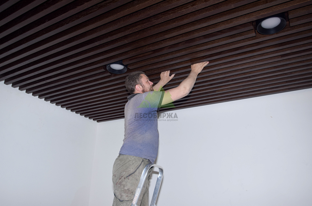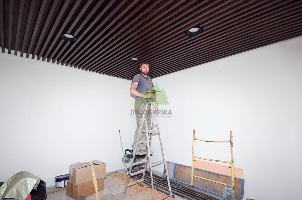 Монтаж баффелей на объекте – это тонкая работа, требующая высокой квалификации и внимания к деталям. Каждый элемент был установлен с соблюдением точного шага и горизонтального уровня, создавая эффект динамичной, но при этом гармоничной поверхности. Специалисты Лесобиржи-Спб обладают богатым опытом в работе с подобными конструкциями, что позволяет нам гарантировать безупречный результат даже при самых сложных дизайнерских решениях. Мы уделяли особое внимание сопряжению баффелей с элементами освещения и системами вентиляции, обеспечивая их бесшовную интеграцию в общий дизайн потолка. В итоге, потолок преобразился в настоящее произведение искусства, где каждая деталь подчеркивает продуманность интерьера и высокий статус компании-заказчика.