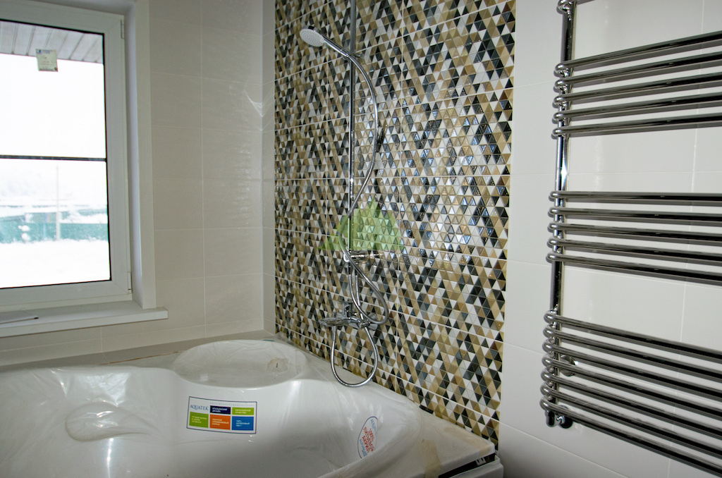 - Монтаж сантехники и оборудования: Установка ванны, раковины, унитаза и душевого оборудования производилась с учётом всех технологических нюансов. Особое внимание уделялось герметизации всех примыканий сантехники к плитке с использованием высококачественного санитарного силикона, предотвращающего протечки и появление грибка. Экран под ванной был выполнен из влагостойкого гипсокартона и также облицован плиткой, создавая единый, завершенный образ.
