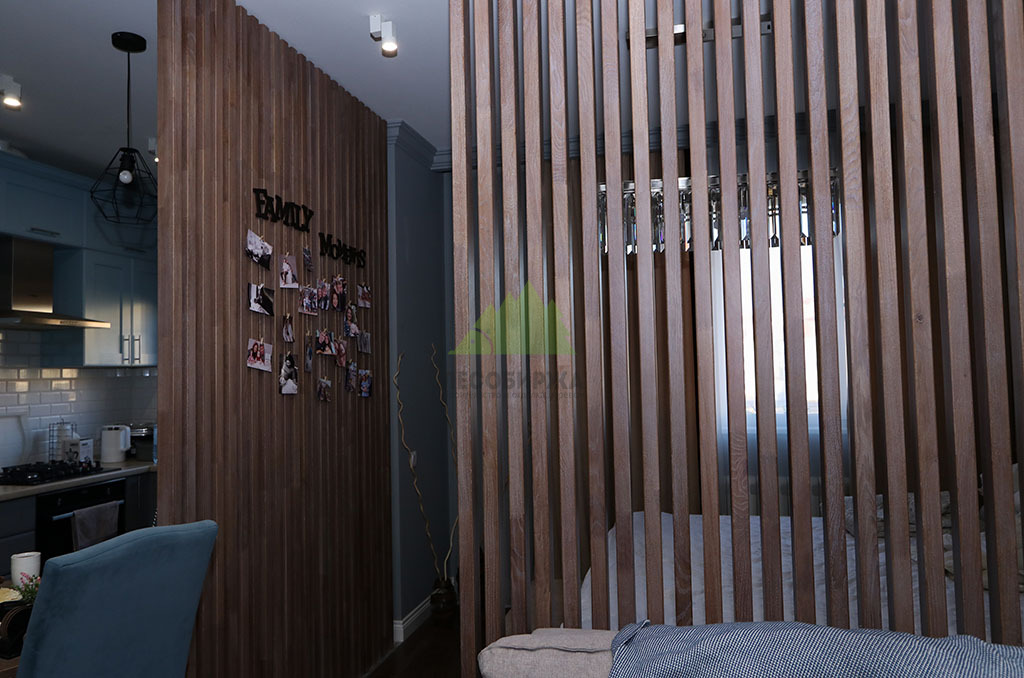 Дубовые реечные перегородки для зонирования пространства в Кюмлено | ЛесоБиржа СПб. Москва
